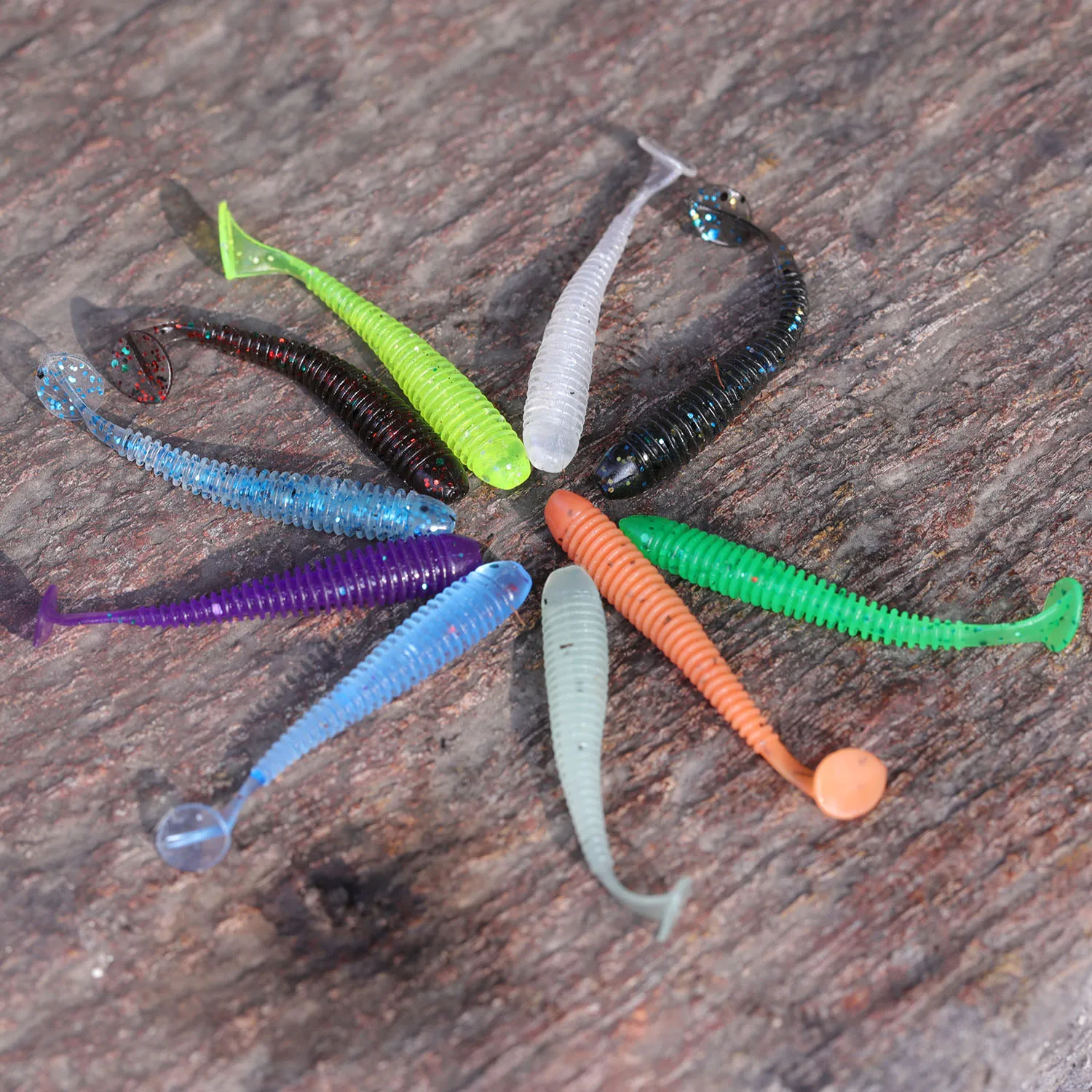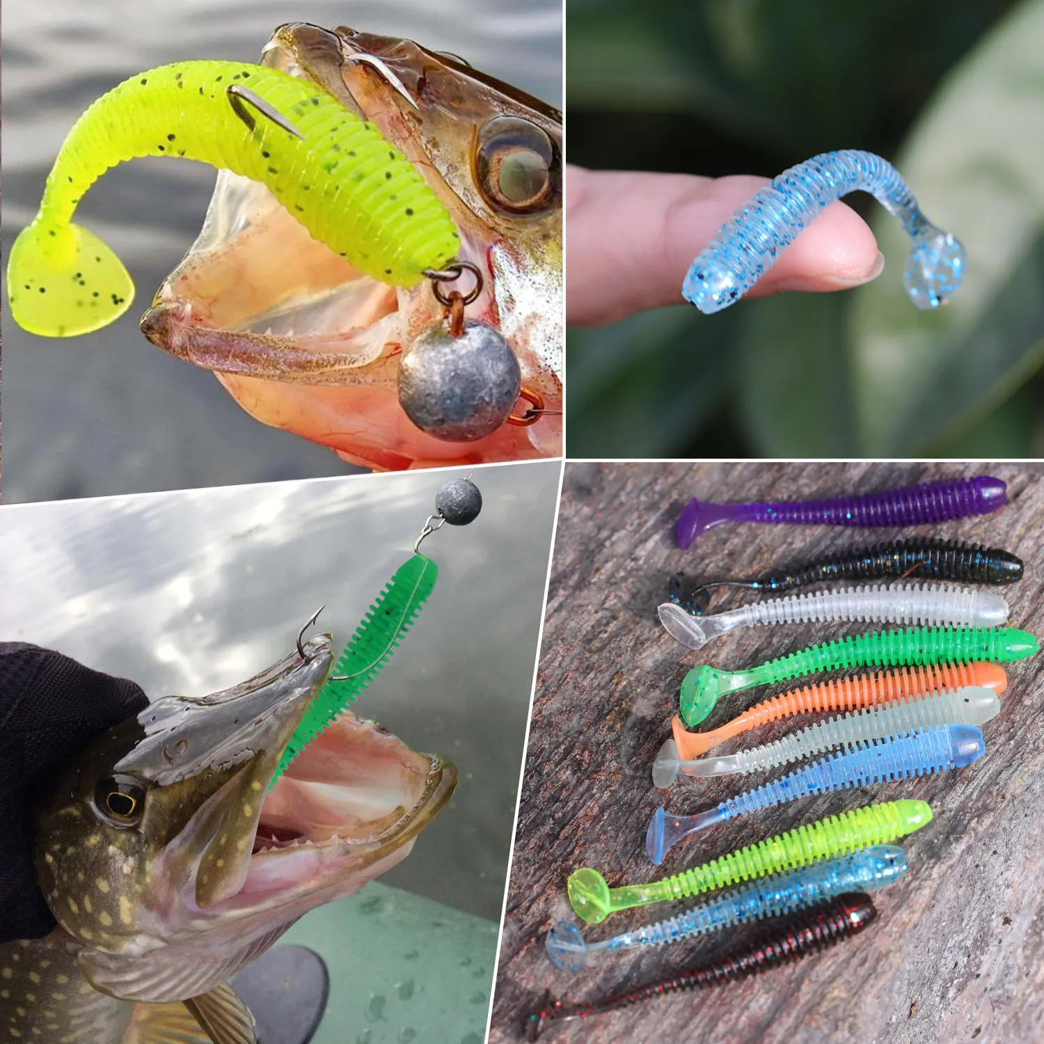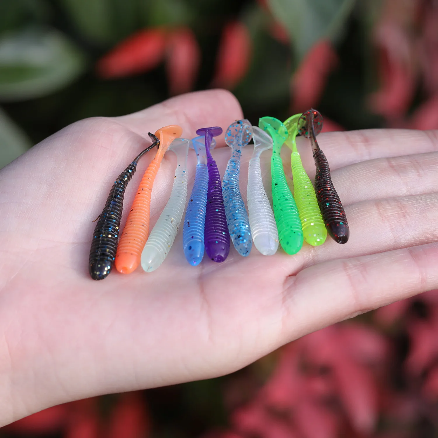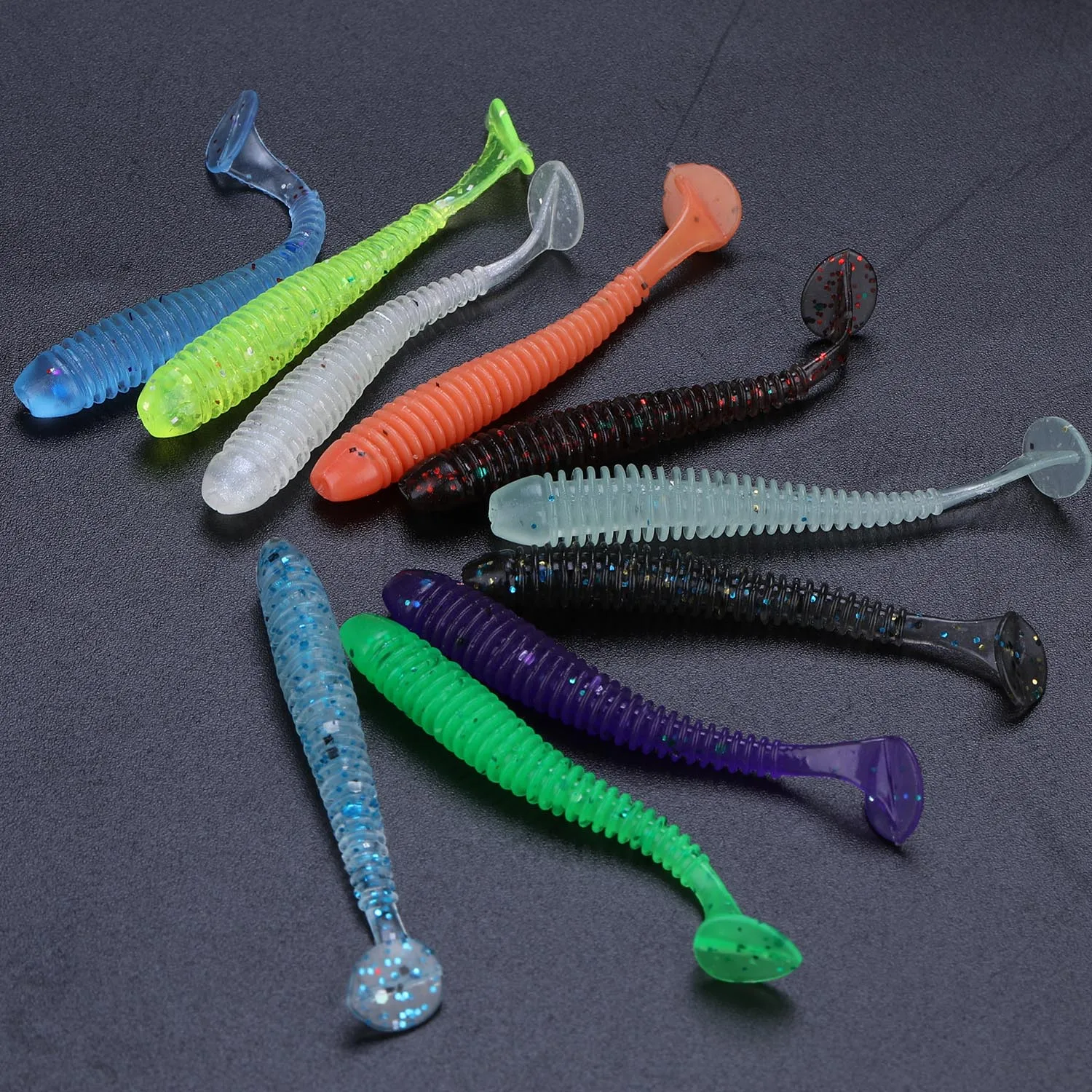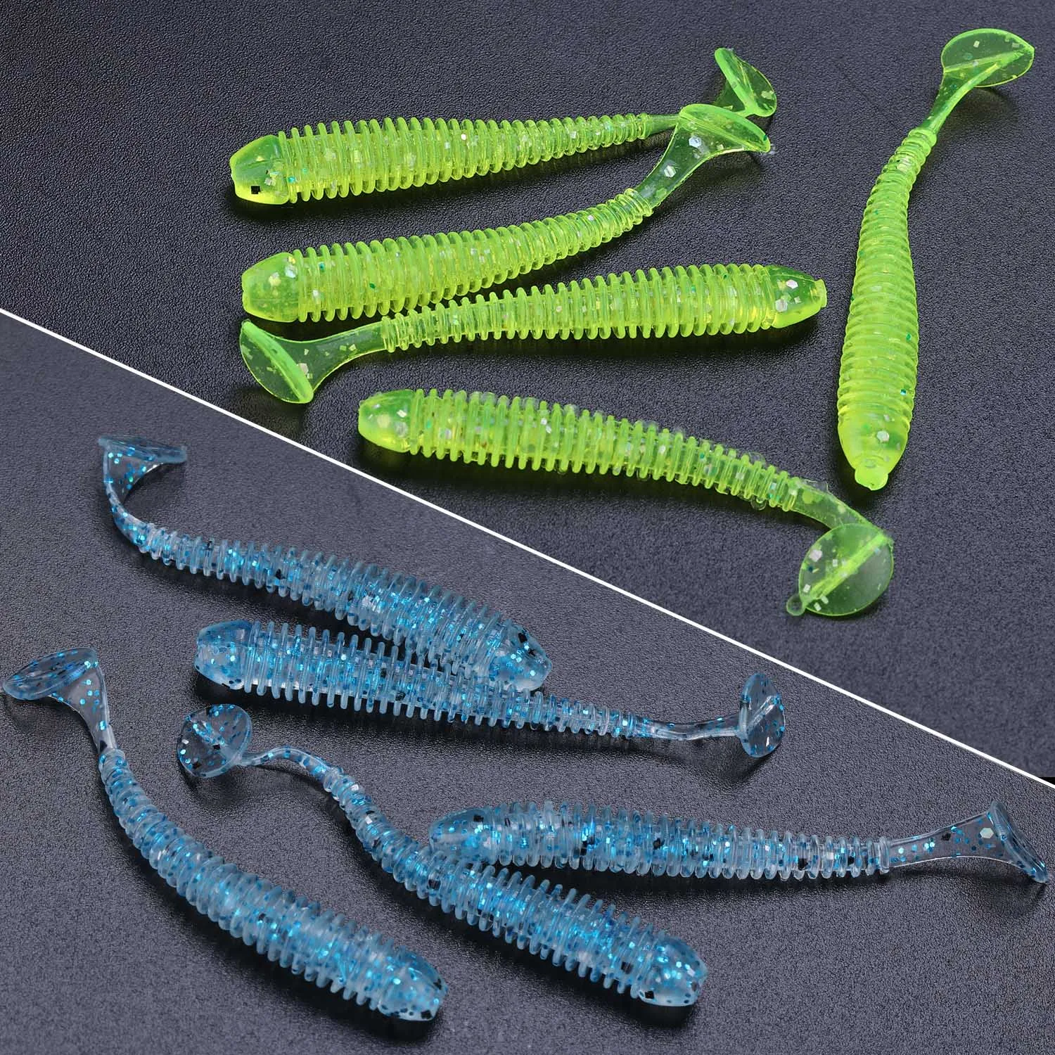 Sougayilang Juego de Señuelos de Pesca Blandos, Cebo de Silicona de 50mm y 0,6g para Pesca, Swimbait, Wobblers, Gusano Suave, Aparejos Artificiales