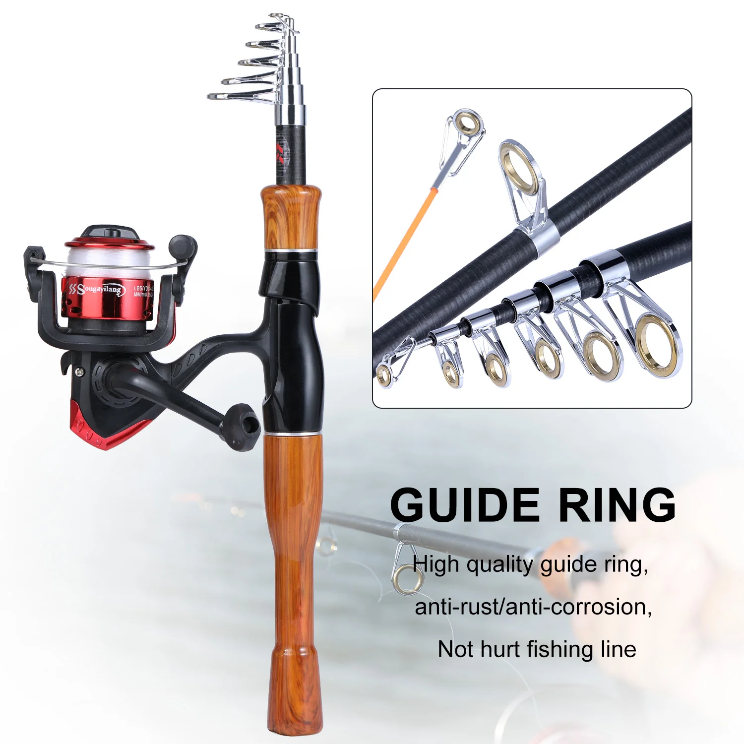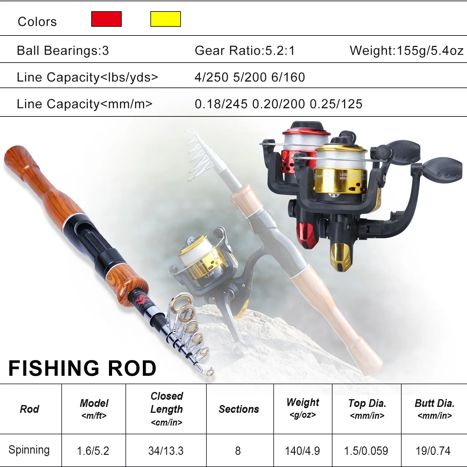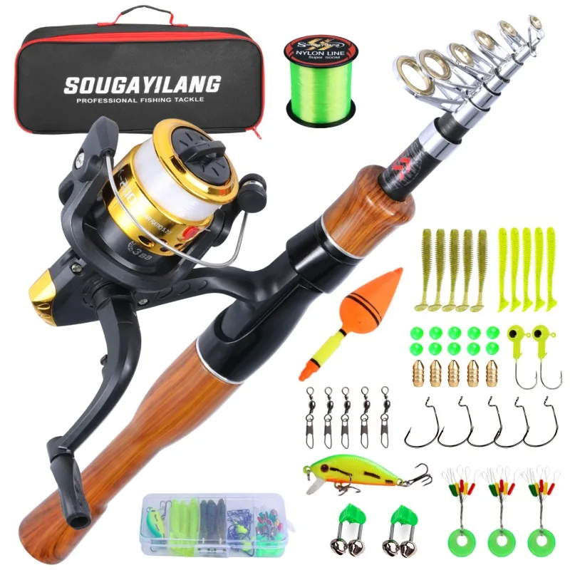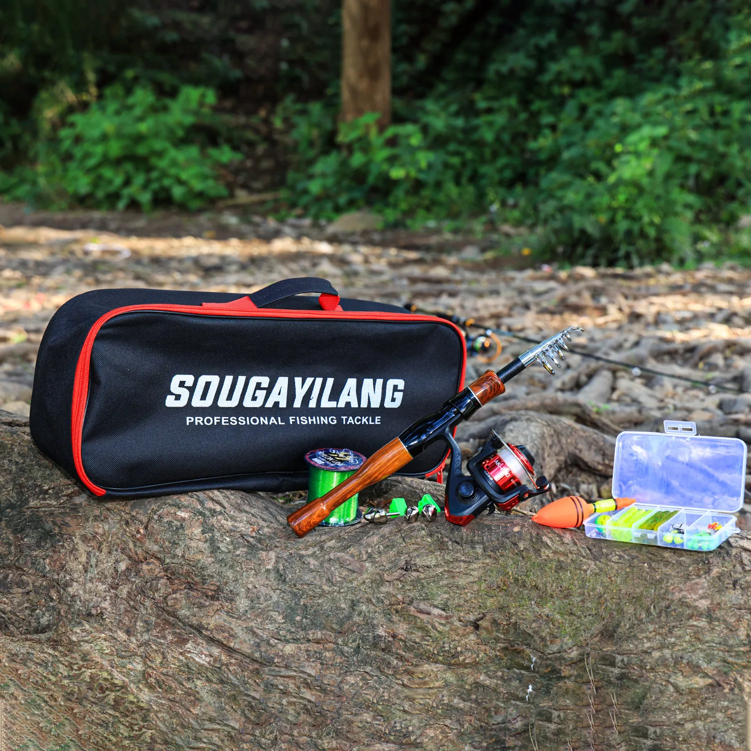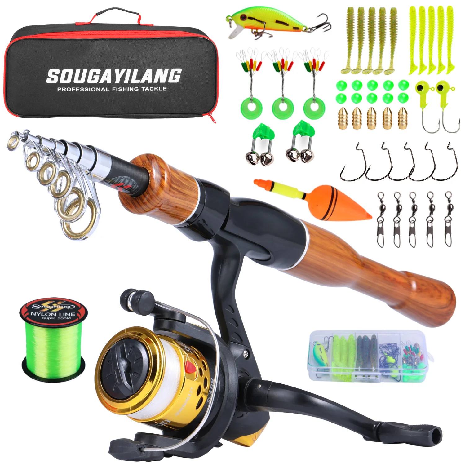 Sougayilang-Kits completos de caña de pescar de 1,6 m con caña de pescar telescópica y carrete giratorio, juego de anzuelos con hilo de pescar de 500 m