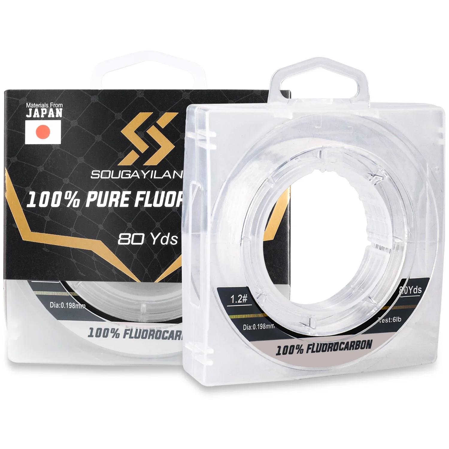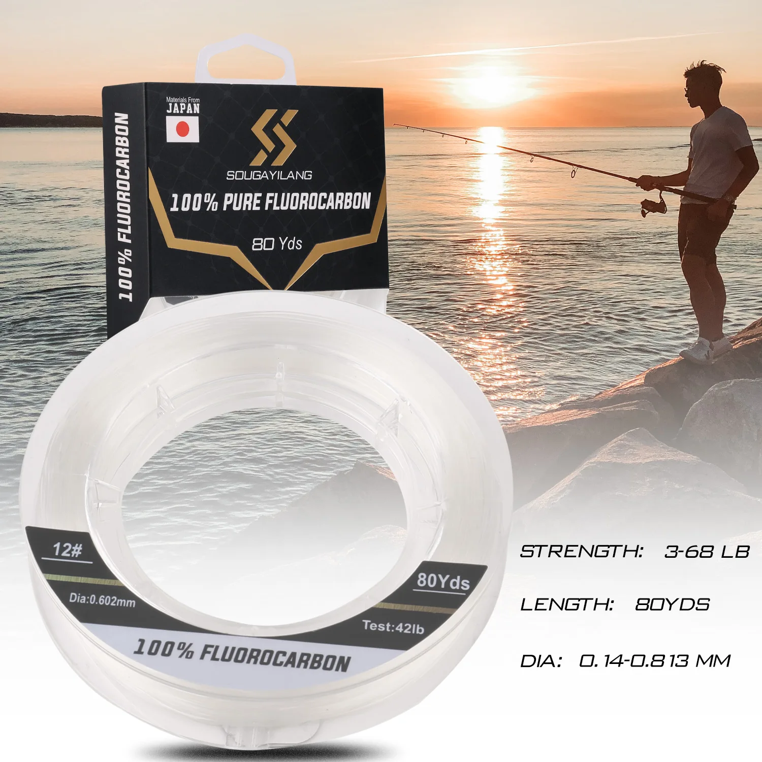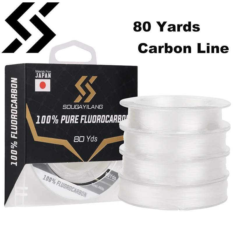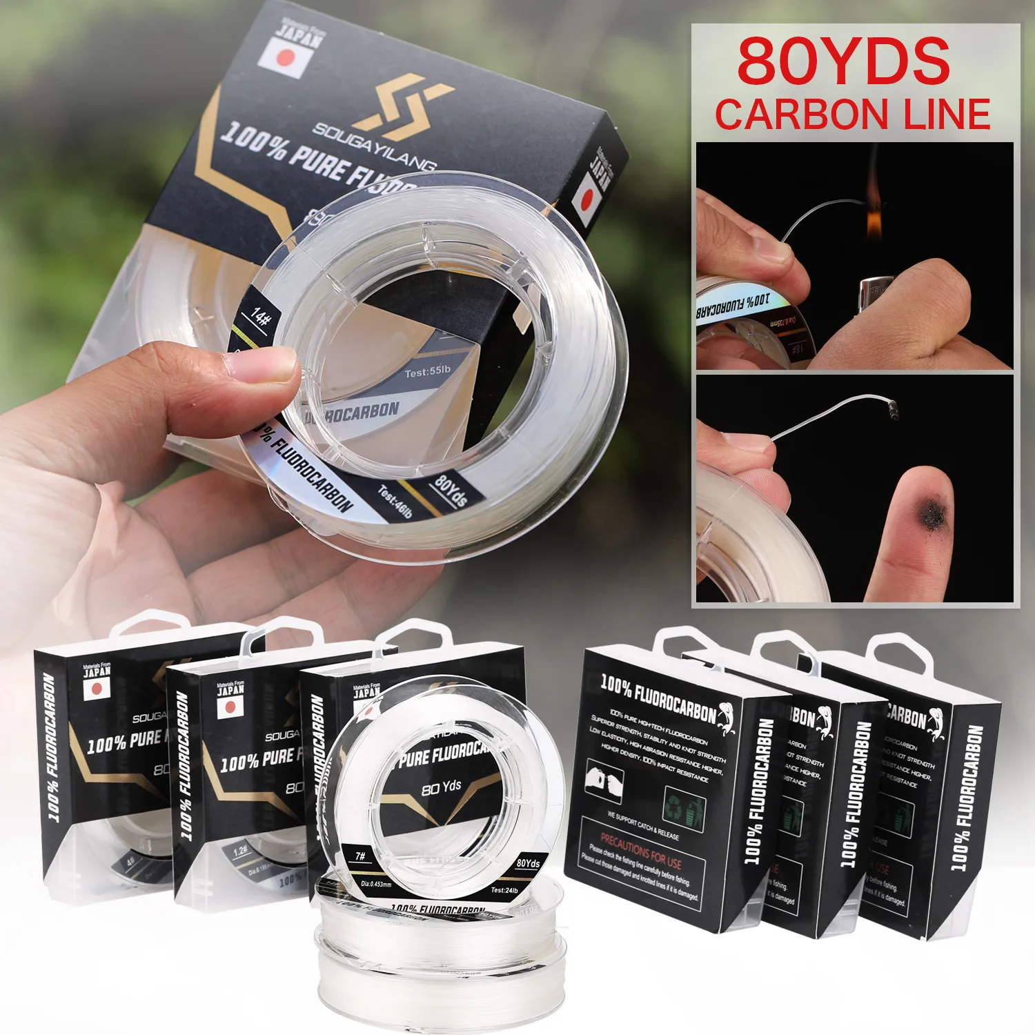 Sougayilang-línea de pesca de fibra de carbono, herramientas de pesca de carpa, líder, 80yds, 100%, Material japonés