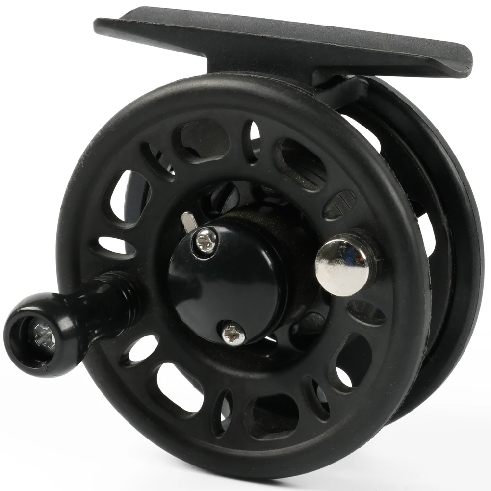 Carrete de pesca con mosca, estructura simple y hábilmente flexible.