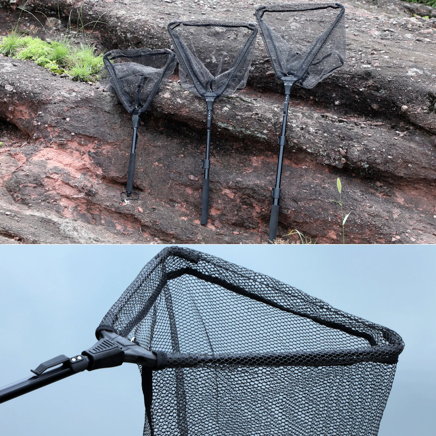 Red de pesca Sougayilang 65 95 112cm, red de pesca plegable, Red de aterrizaje de pesca telescópica, cuchara con mango de EVA, herramientas de pesca