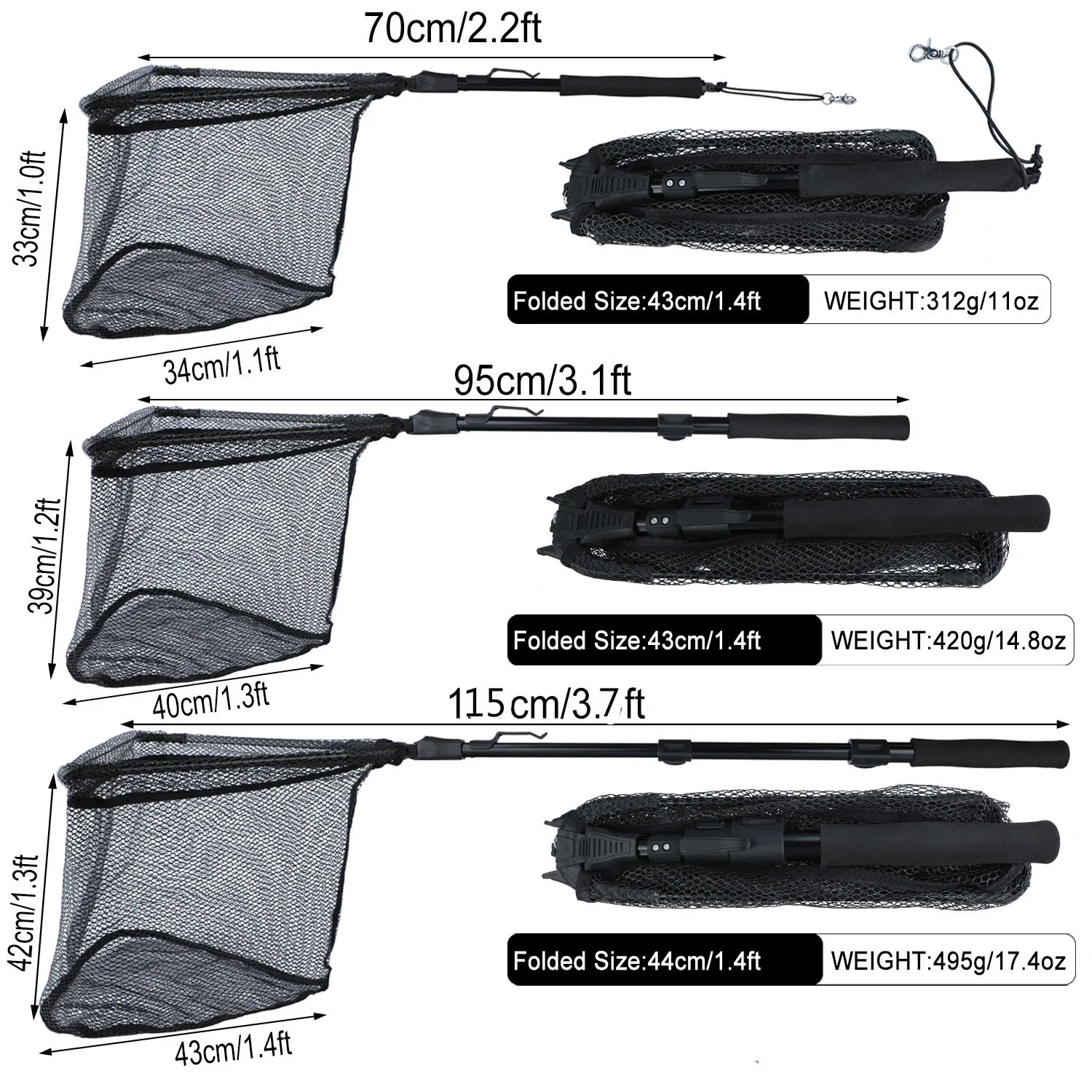 Longitud abierta: 75cm 95cm 112cm