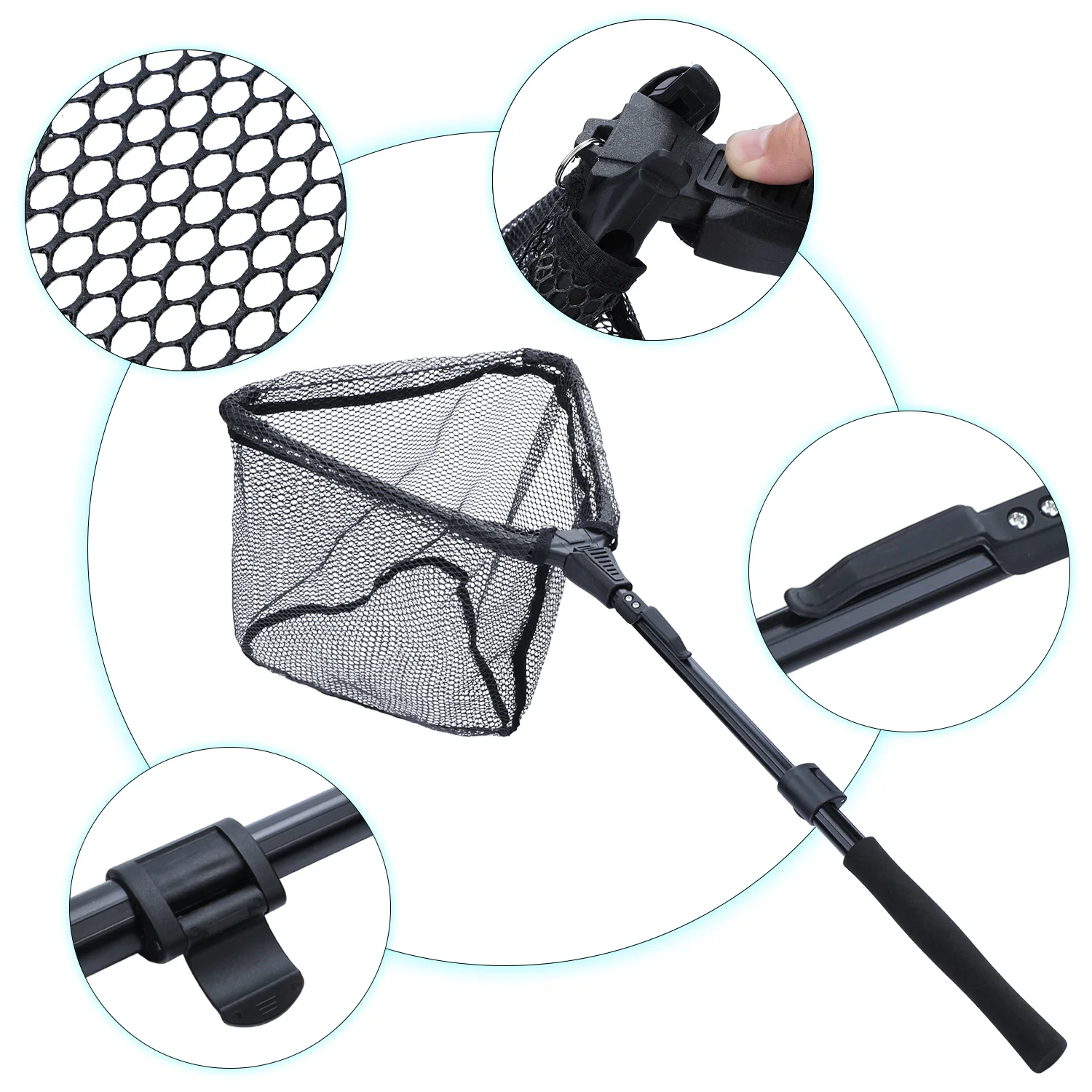 Sougayilang, red de pesca plegable de 95cm y 112cm, mango de aleación de aluminio, red de pesca de aterrizaje plegable para pesca con mosca, pesca de carpa