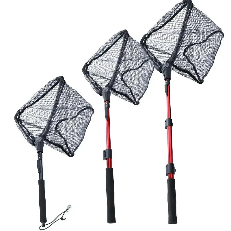 Sougayilang, red de pesca plegable de 95cm y 112cm, mango de aleación de aluminio, red de pesca de aterrizaje plegable para pesca con mosca, pesca de carpa