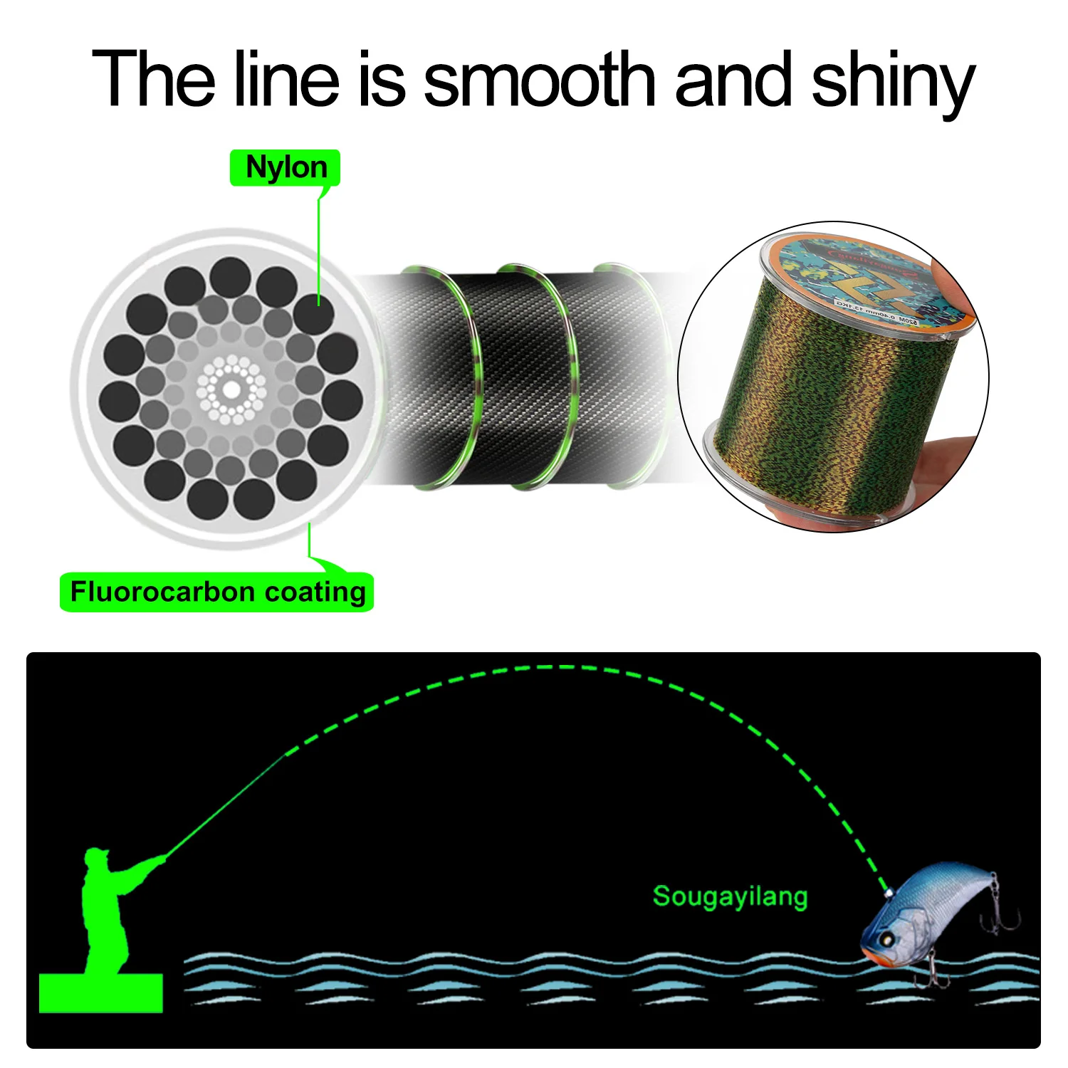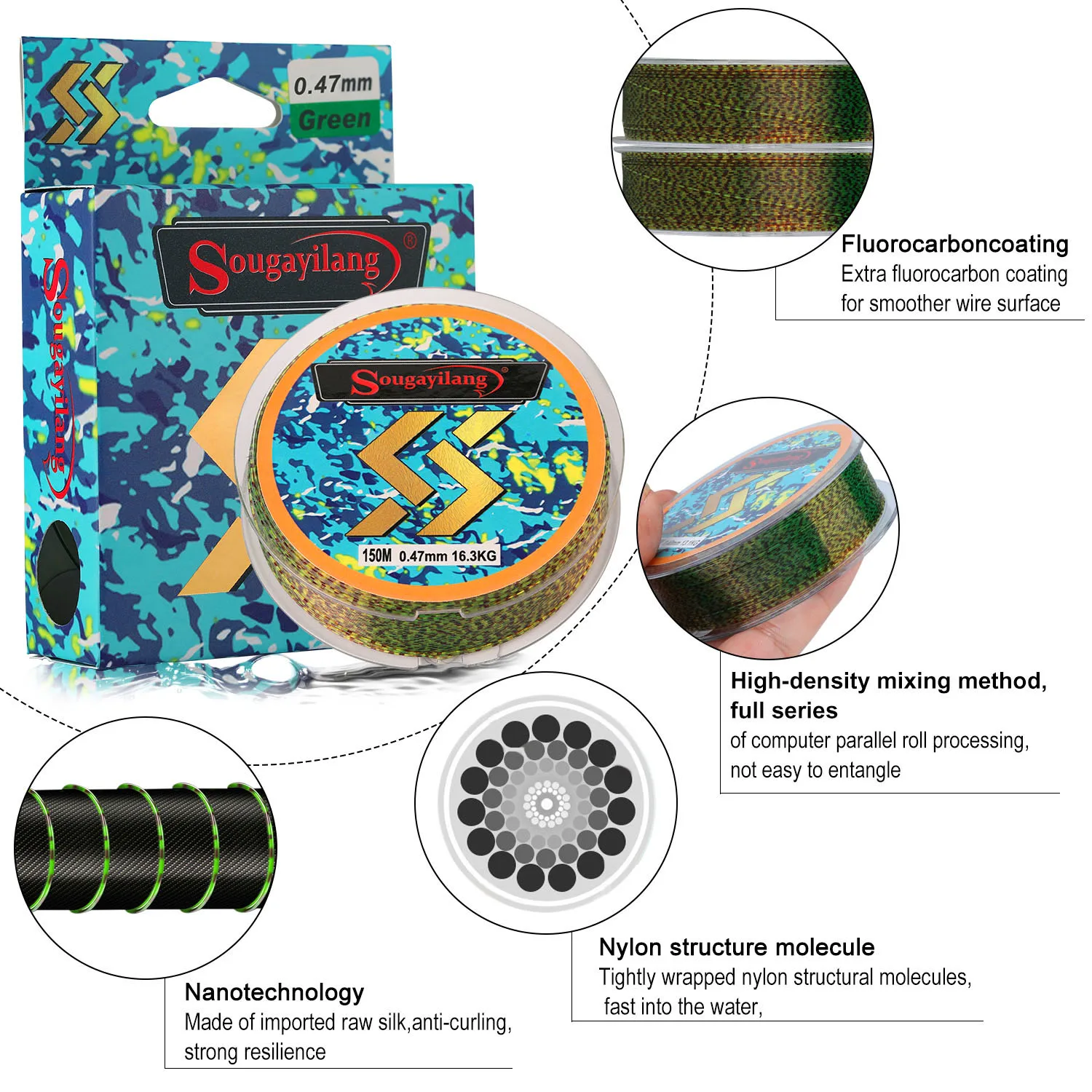 Sougayilang, nuevo, 150M, línea de pesca Invisible de nailon, hilo de hundimiento moteado de fluorocarbono, línea de pesca de carpa