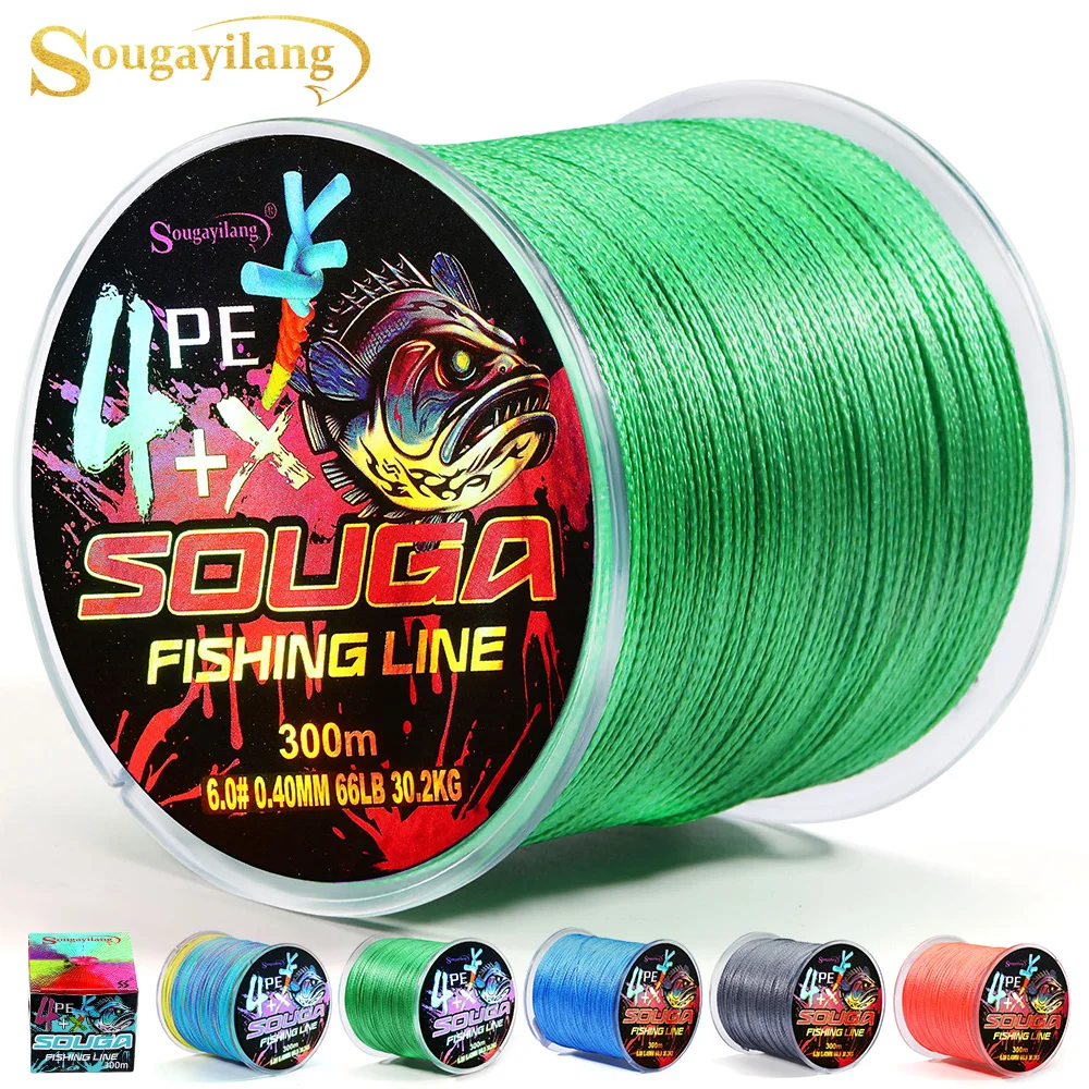 Sougayilang-sedal de pesca trenzado de PE, 4 hebras, 100M, 300M, MaxDrag, 66LB, suave y duradero, adecuado para pesca de carpa