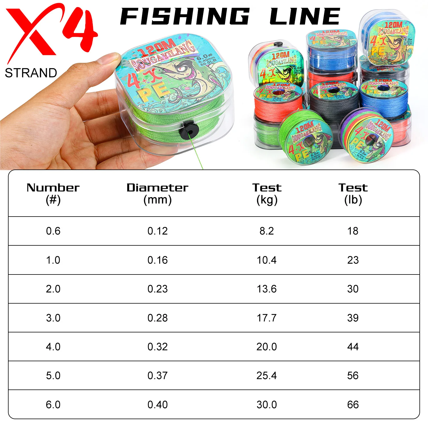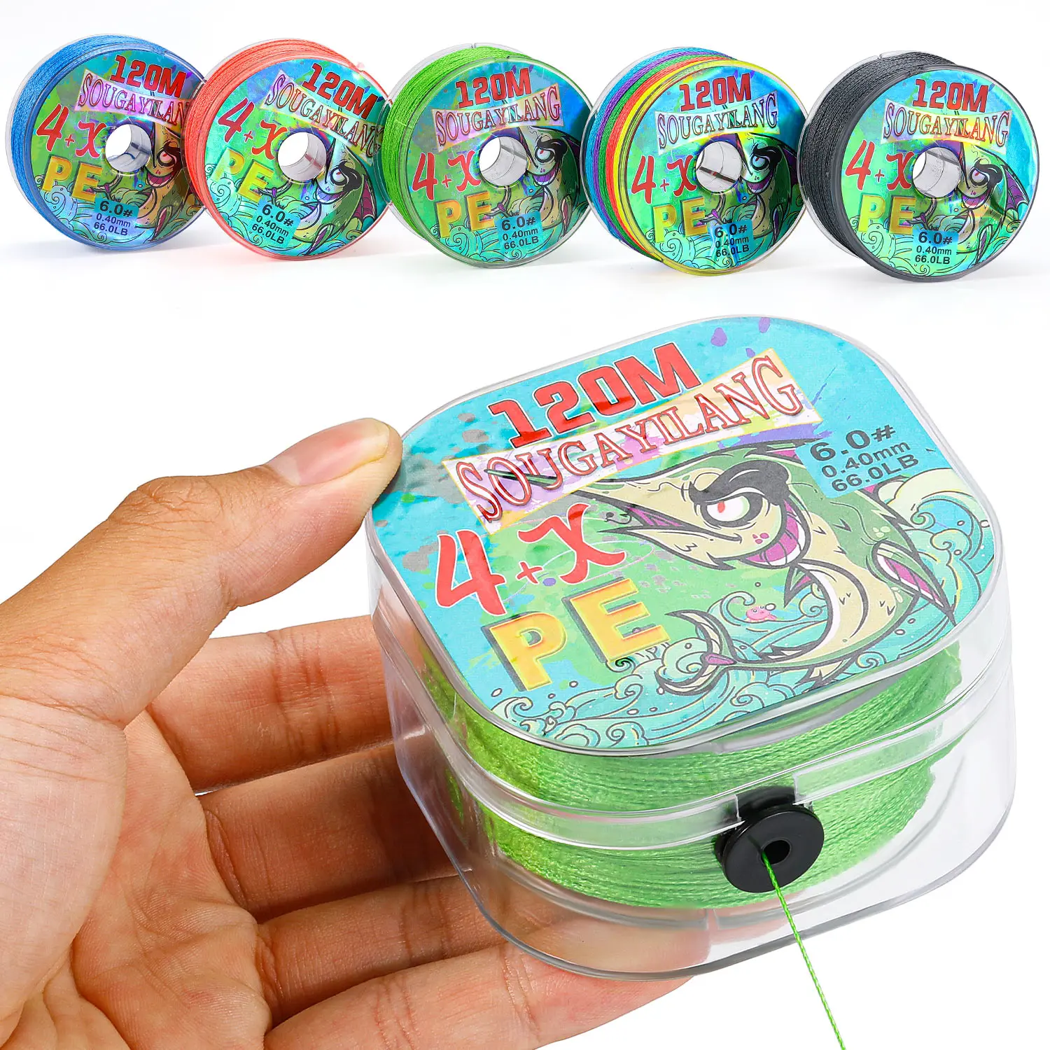 Sougayilang-sedal de pesca trenzado X4 de 120m, multifilamento, PE, con caja de bobinado, resistente al desgaste, Japón