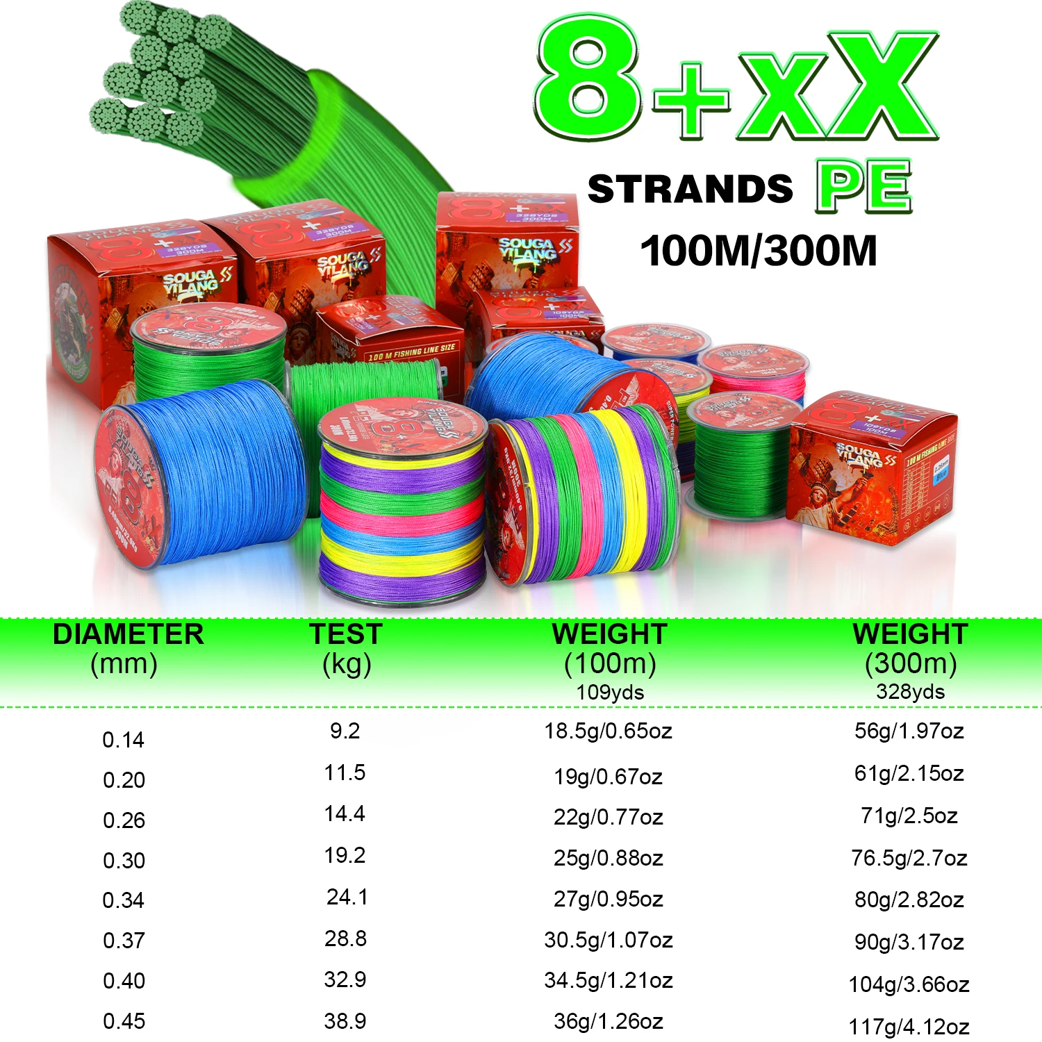 Sougayilang 8 hebras línea de pesca trenzada 100M 300M multifilamento carpa pesca alambre trenzado 20-85LB accesorio de pesca LÍNEA DE PE