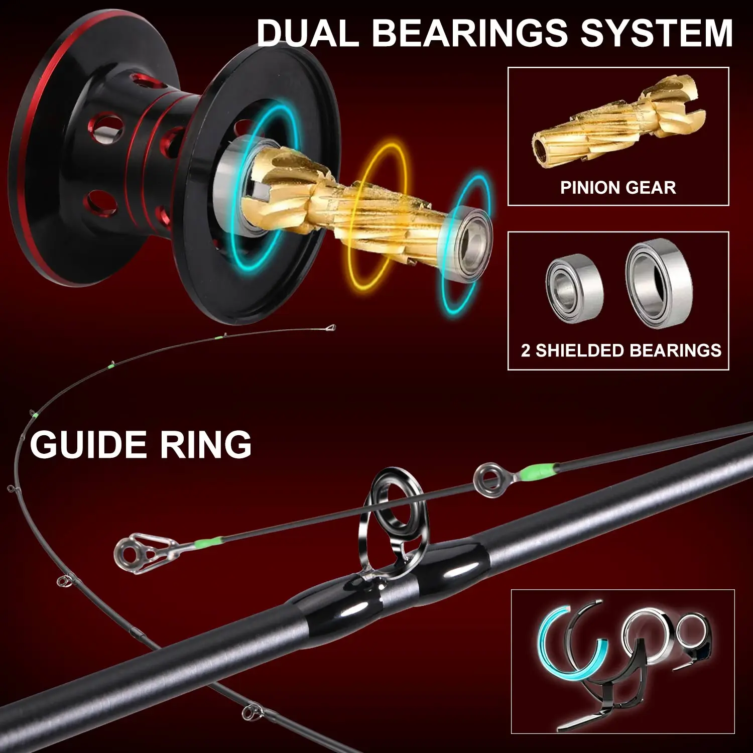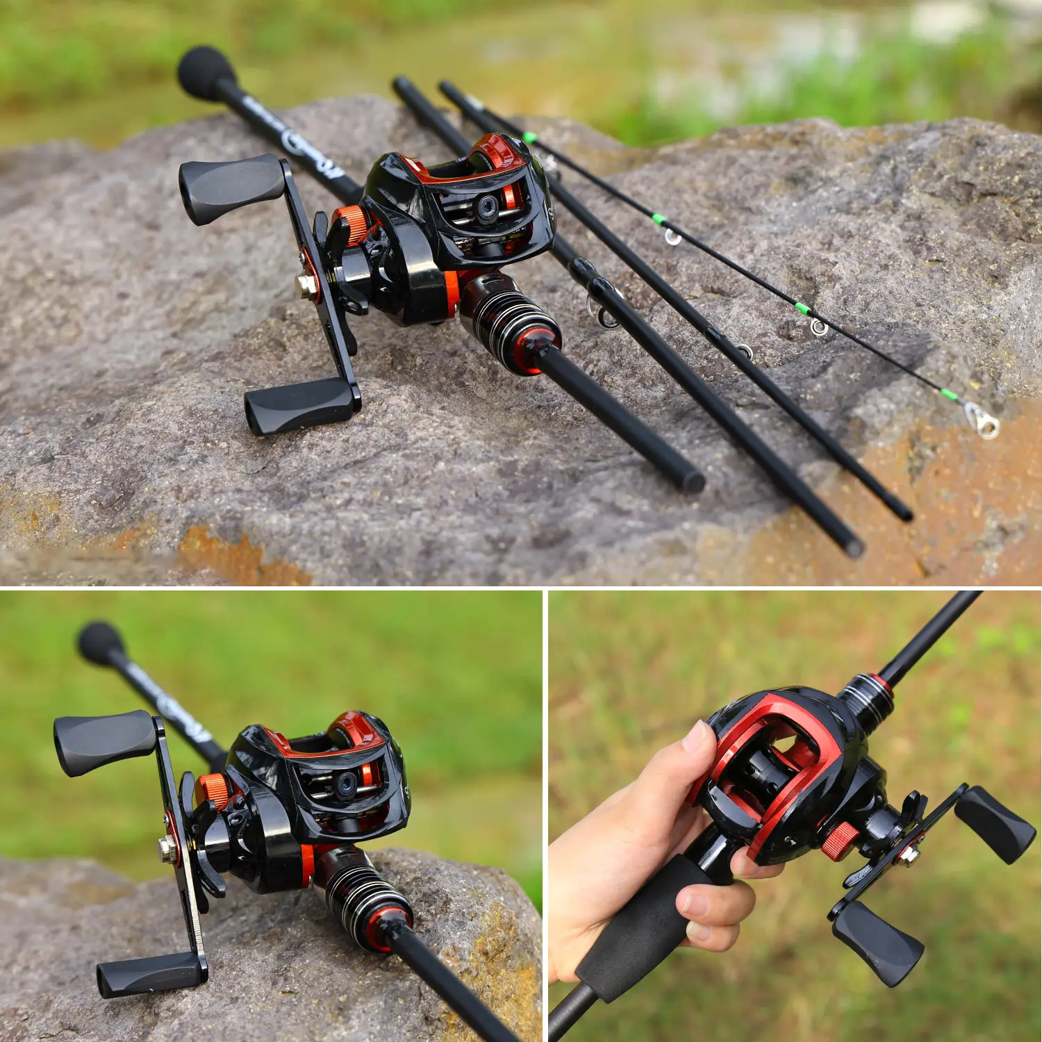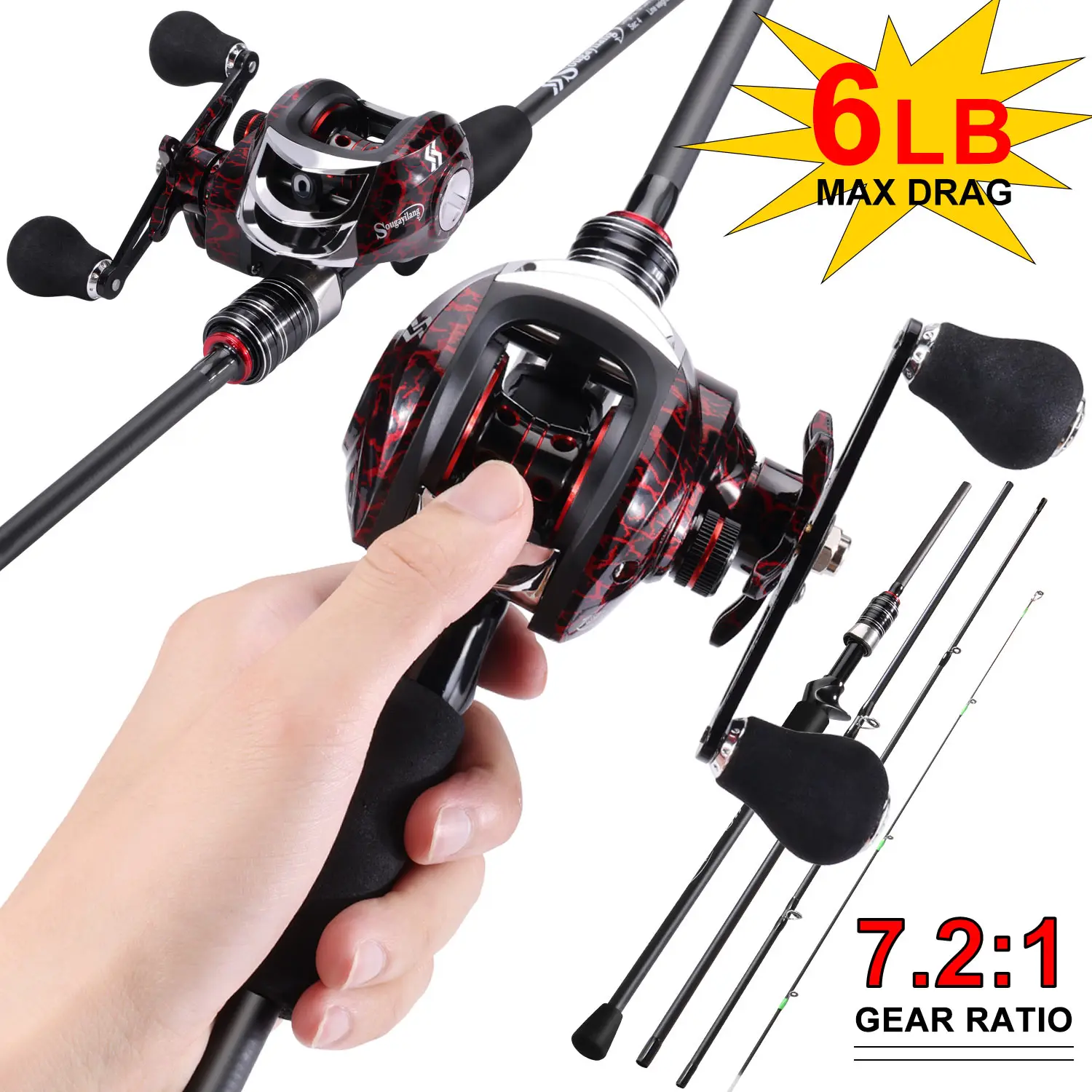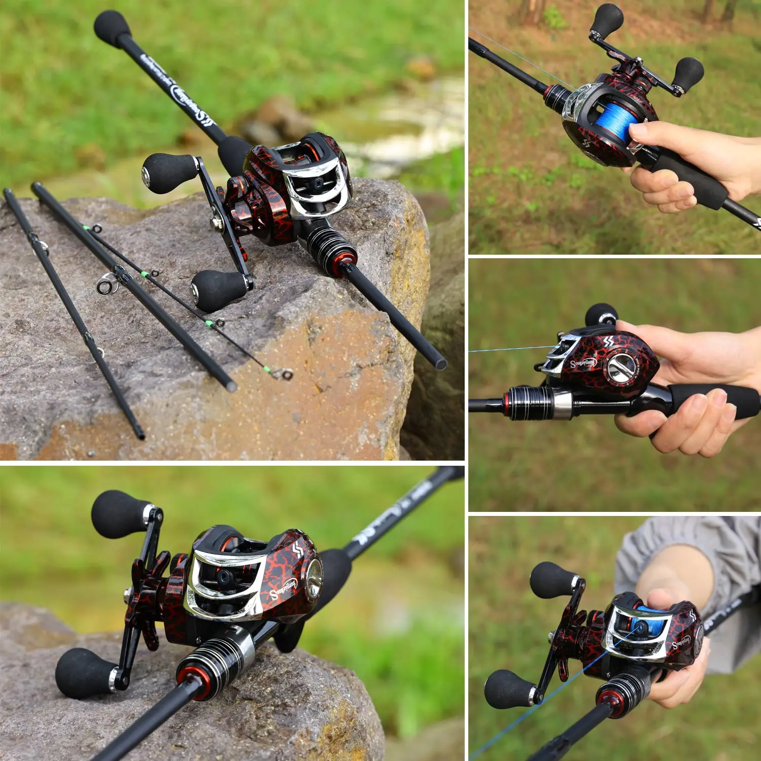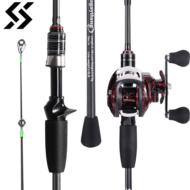Combo de pesca con señuelos Sougayilang, 2,1 m, varilla de fibra de carbono de 4 secciones, relación de engranaje 7,2: 1, sistema de freno magnético, carrete de pesca, Kit de pesca
