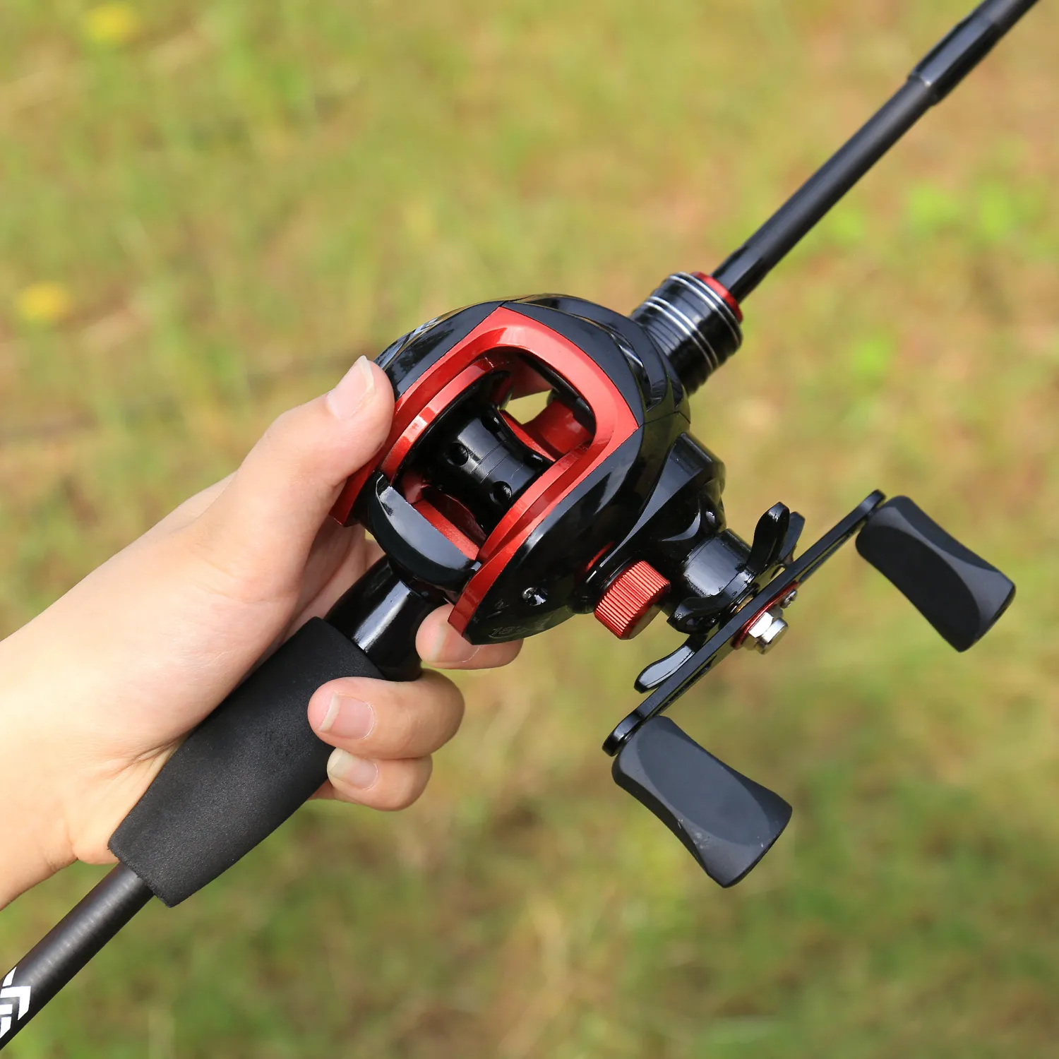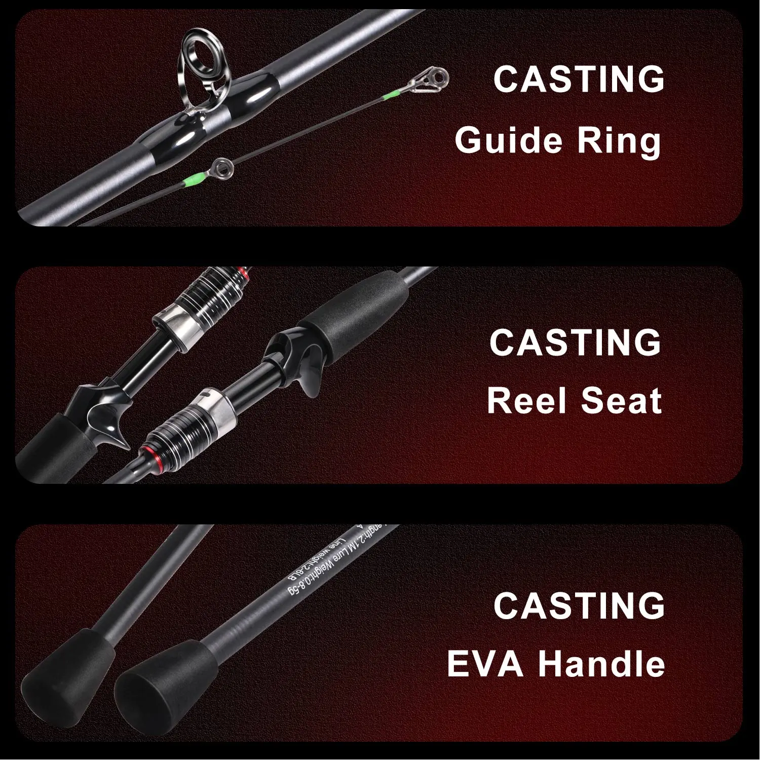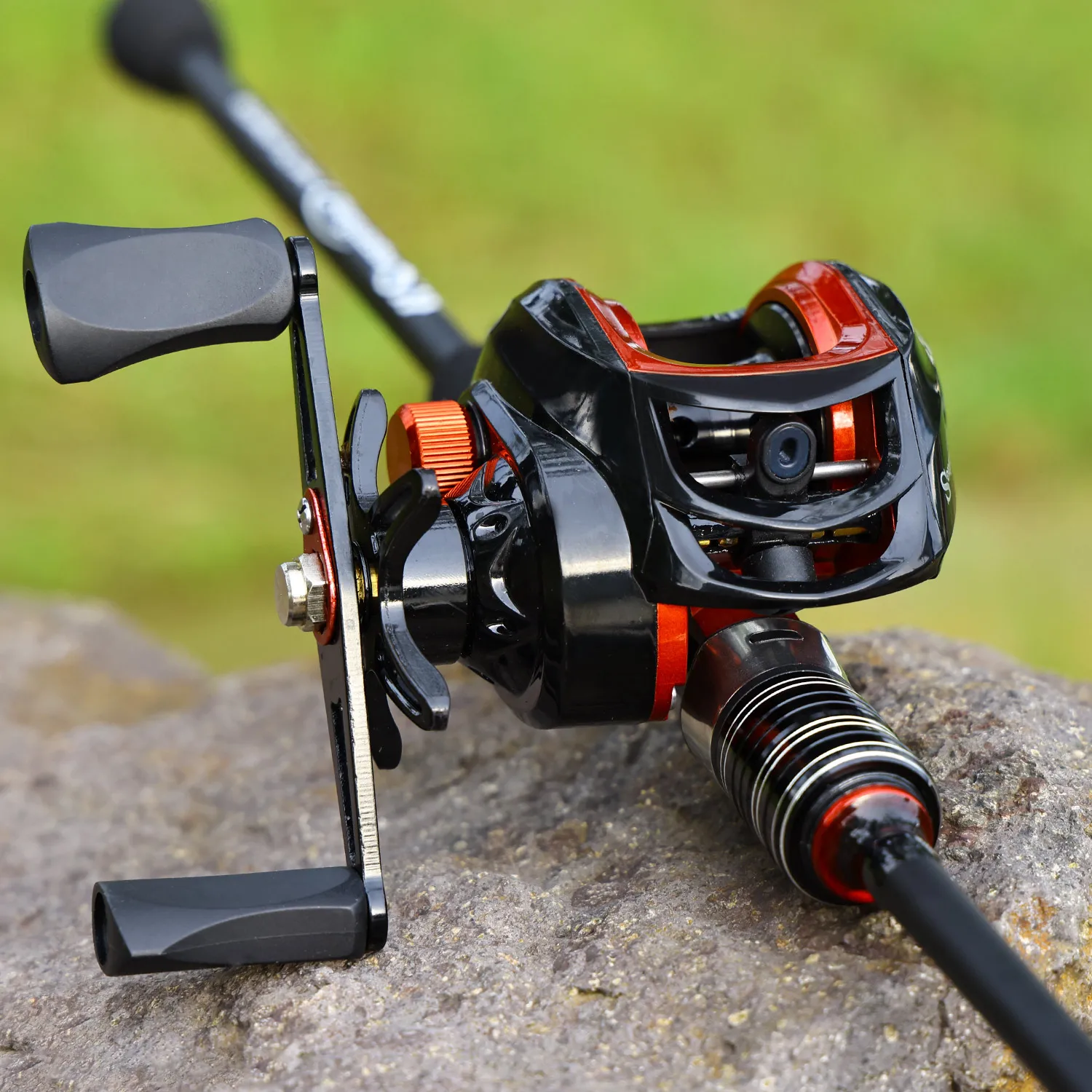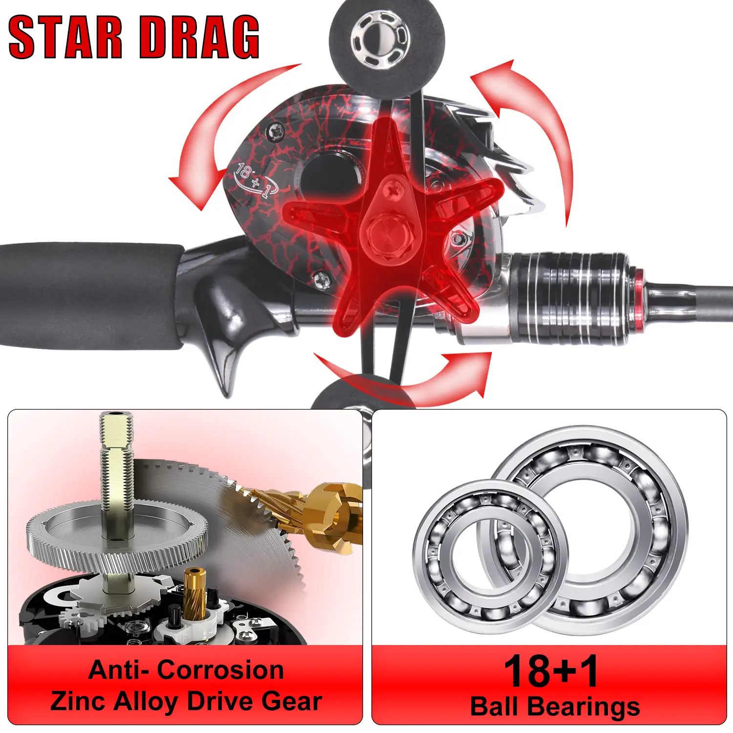 Combo de pesca con señuelos Sougayilang, 2,1 m, varilla de fibra de carbono de 4 secciones, relación de engranaje 7,2: 1, sistema de freno magnético, carrete de pesca, Kit de pesca