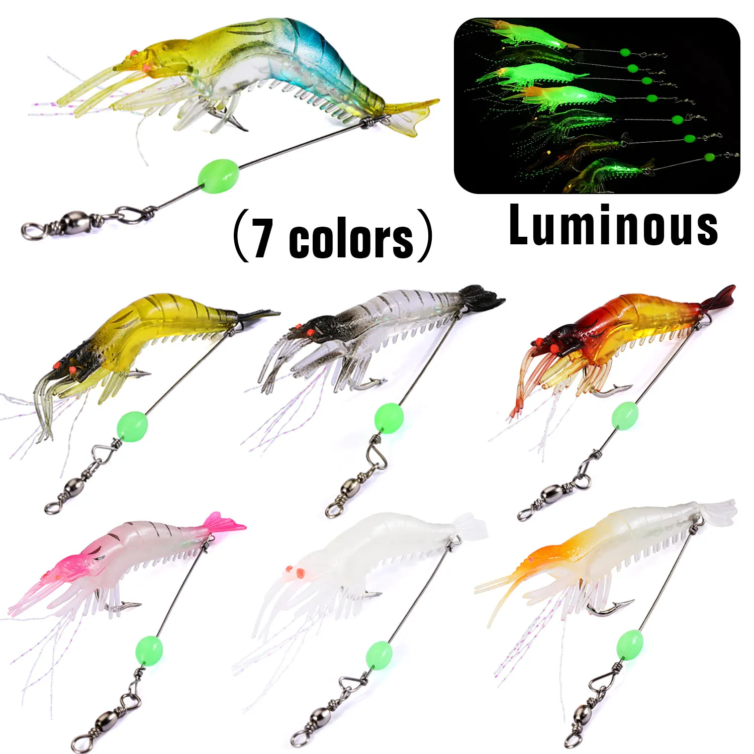 Señuelo luminoso de camarón para pesca suave Sougayilang con gancho, cuentas giratorias, cebo de pesca con brillo de silicona Artificial, juego de cebo para peces Jigging