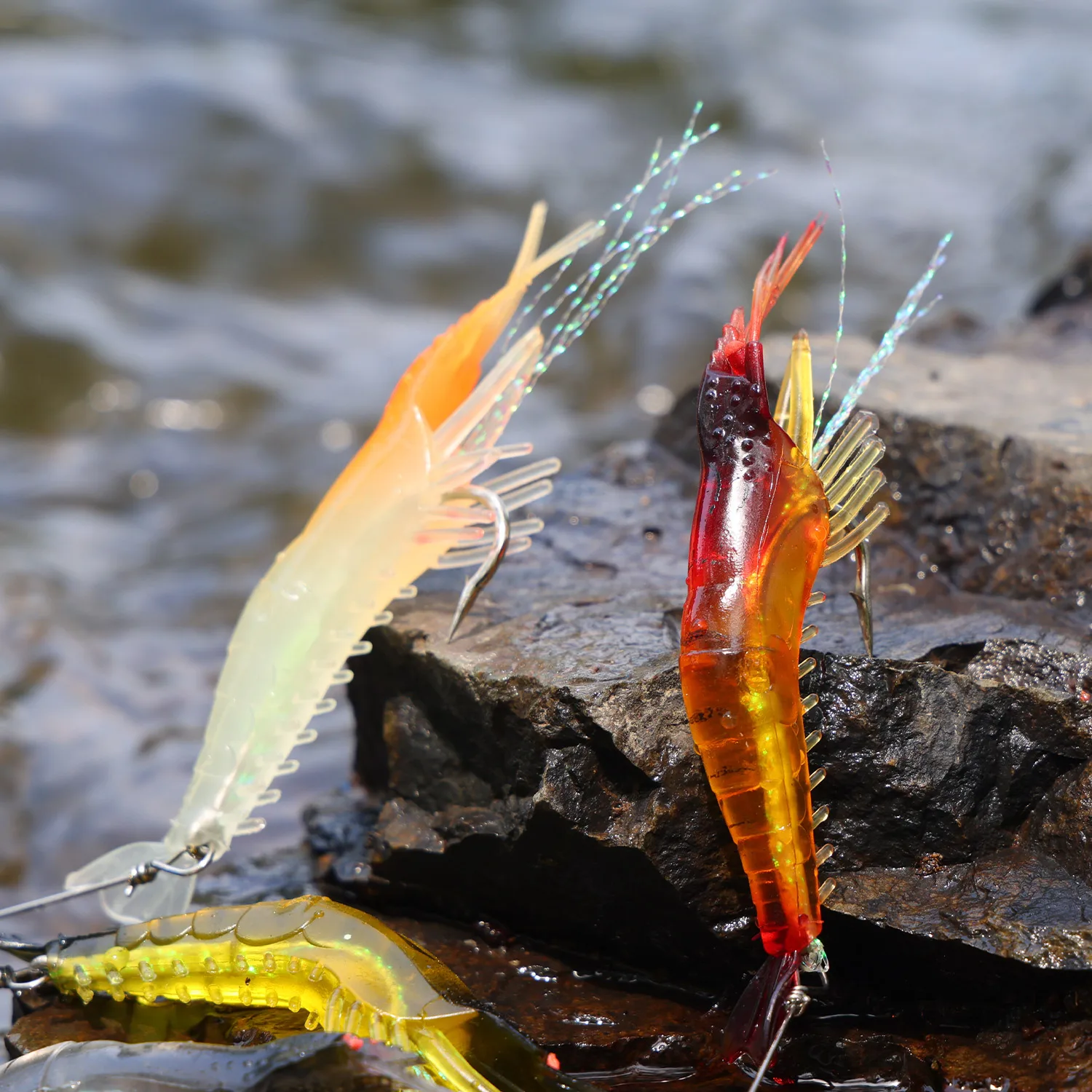 (4) Juego de cebo para camarones con señuelos blandos hecho con plástico de alta calidad, suave y flexible.