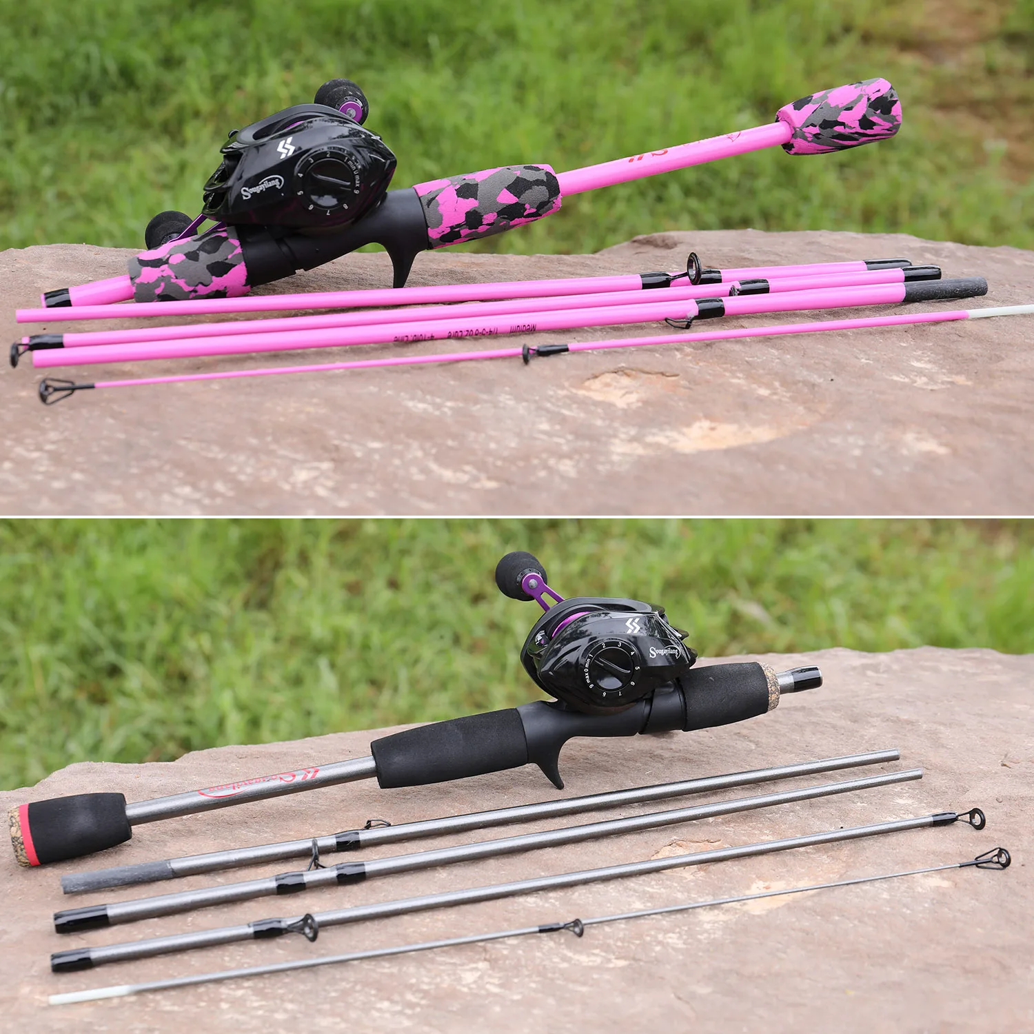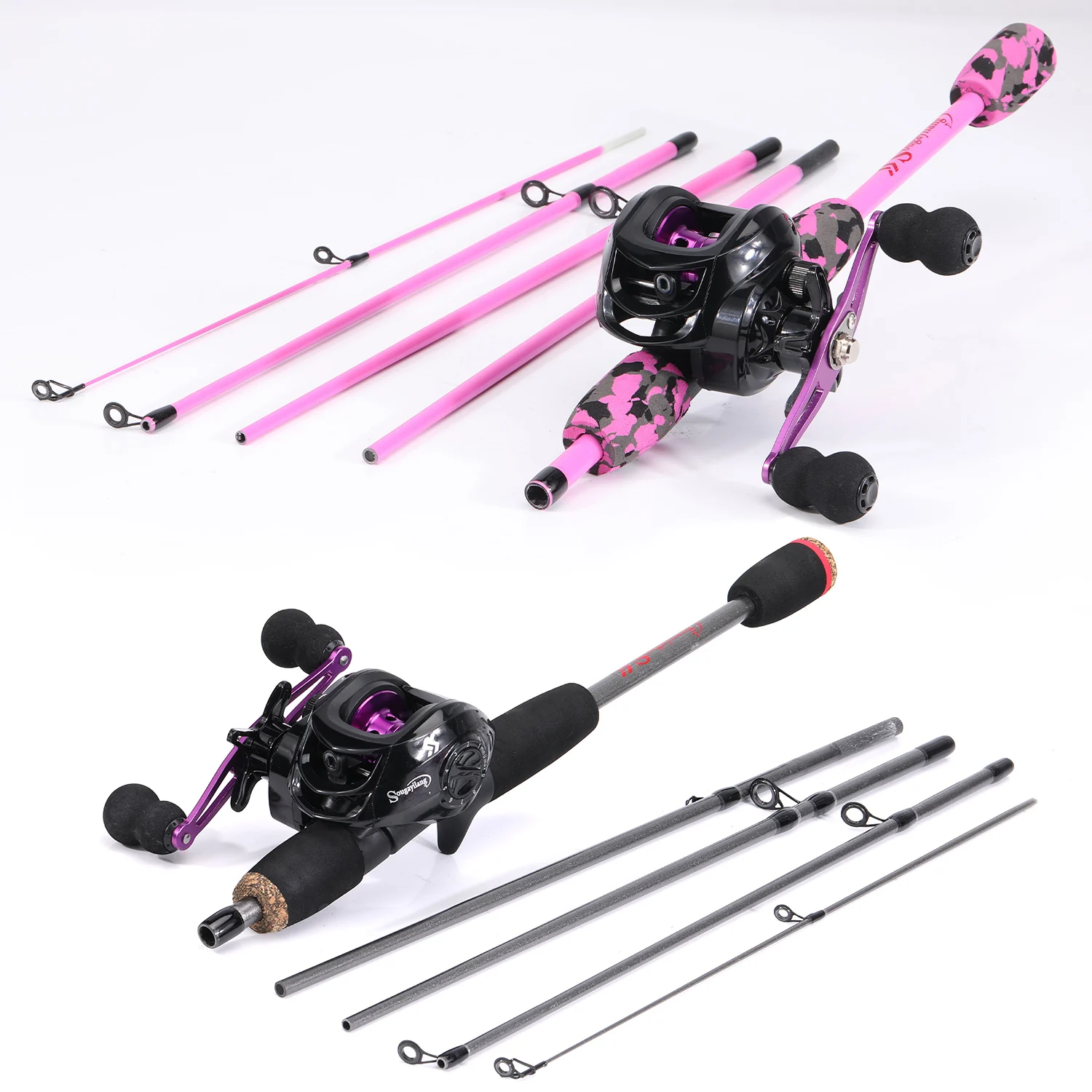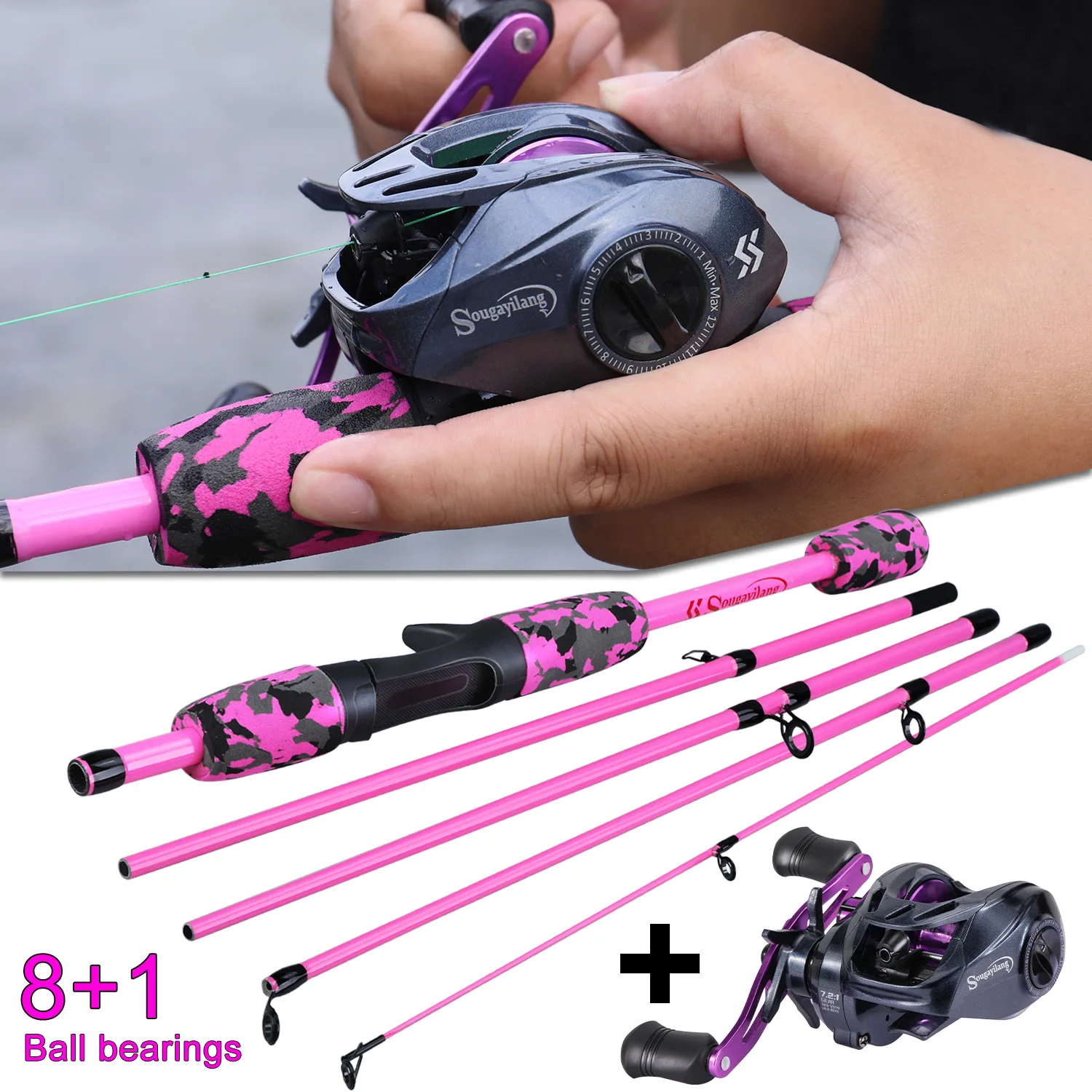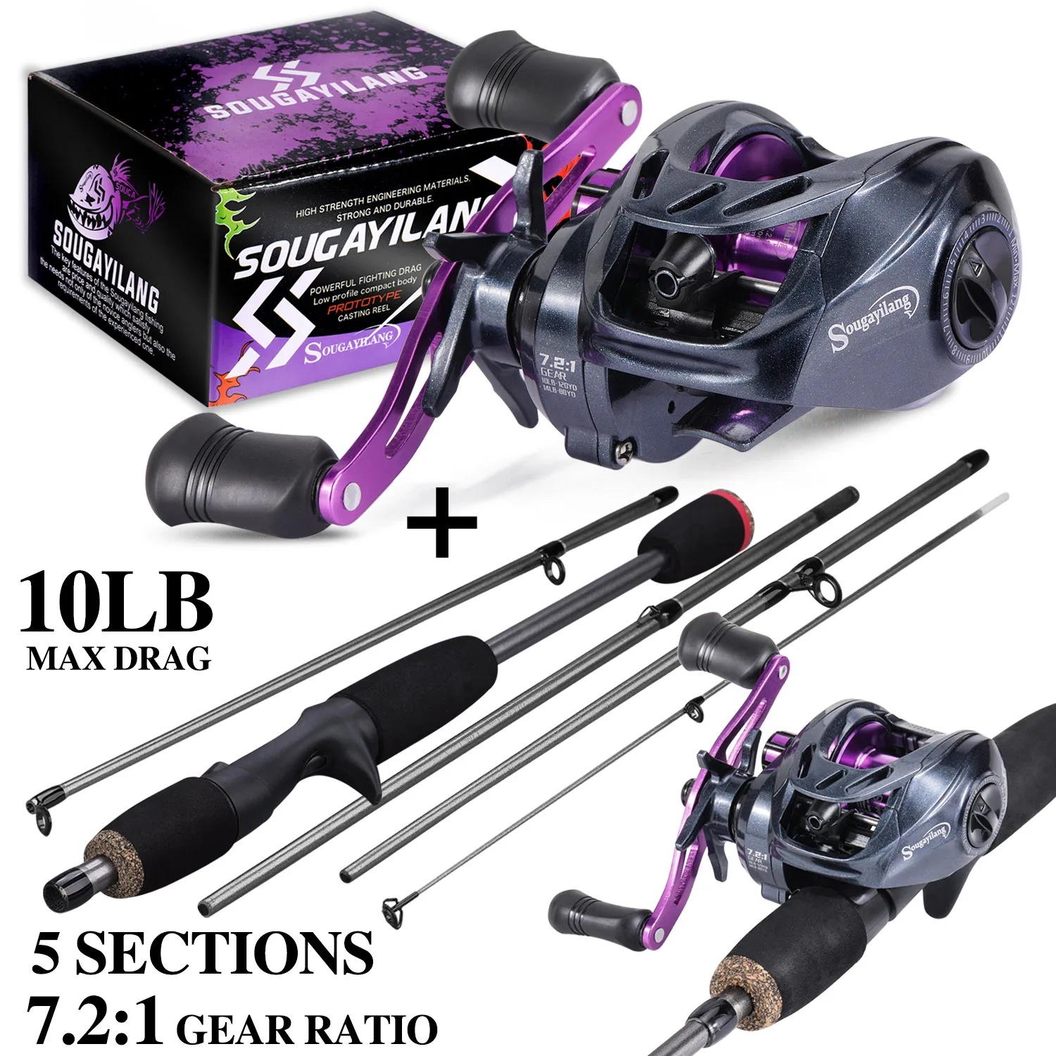 Sougayilang, combo de pesca con señuelos, 5 secciones, 170CM, caña de pescar de fibra de carbono y 8 + 1BB, carrete de Baitcasting, juego de pesca de viaje, Pesca