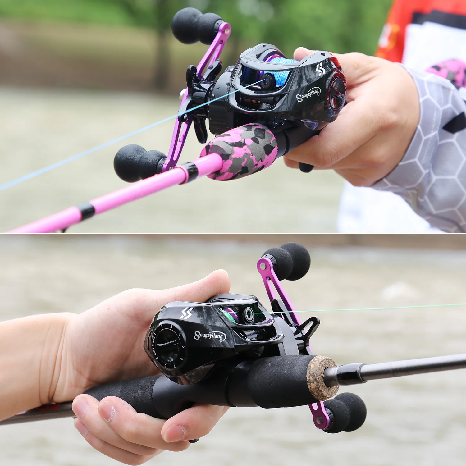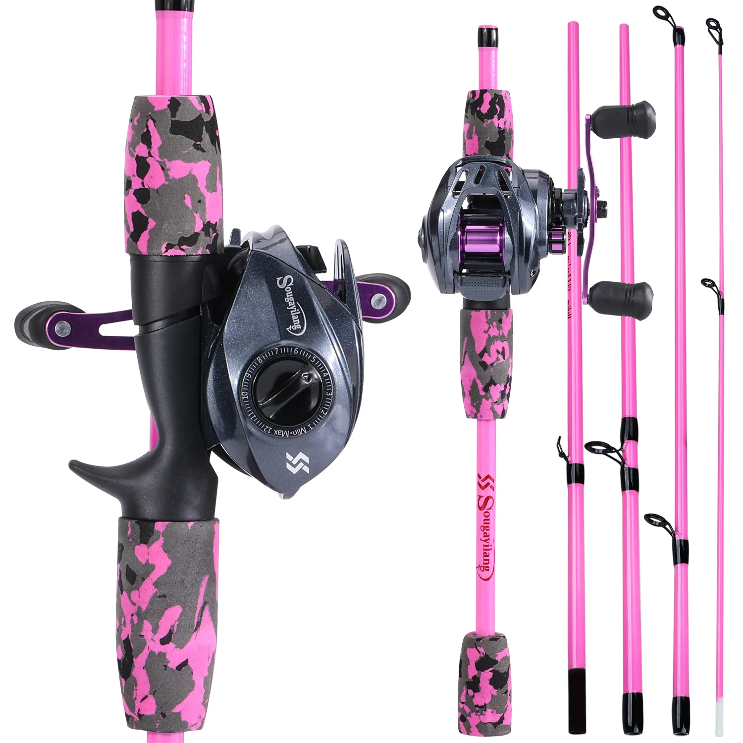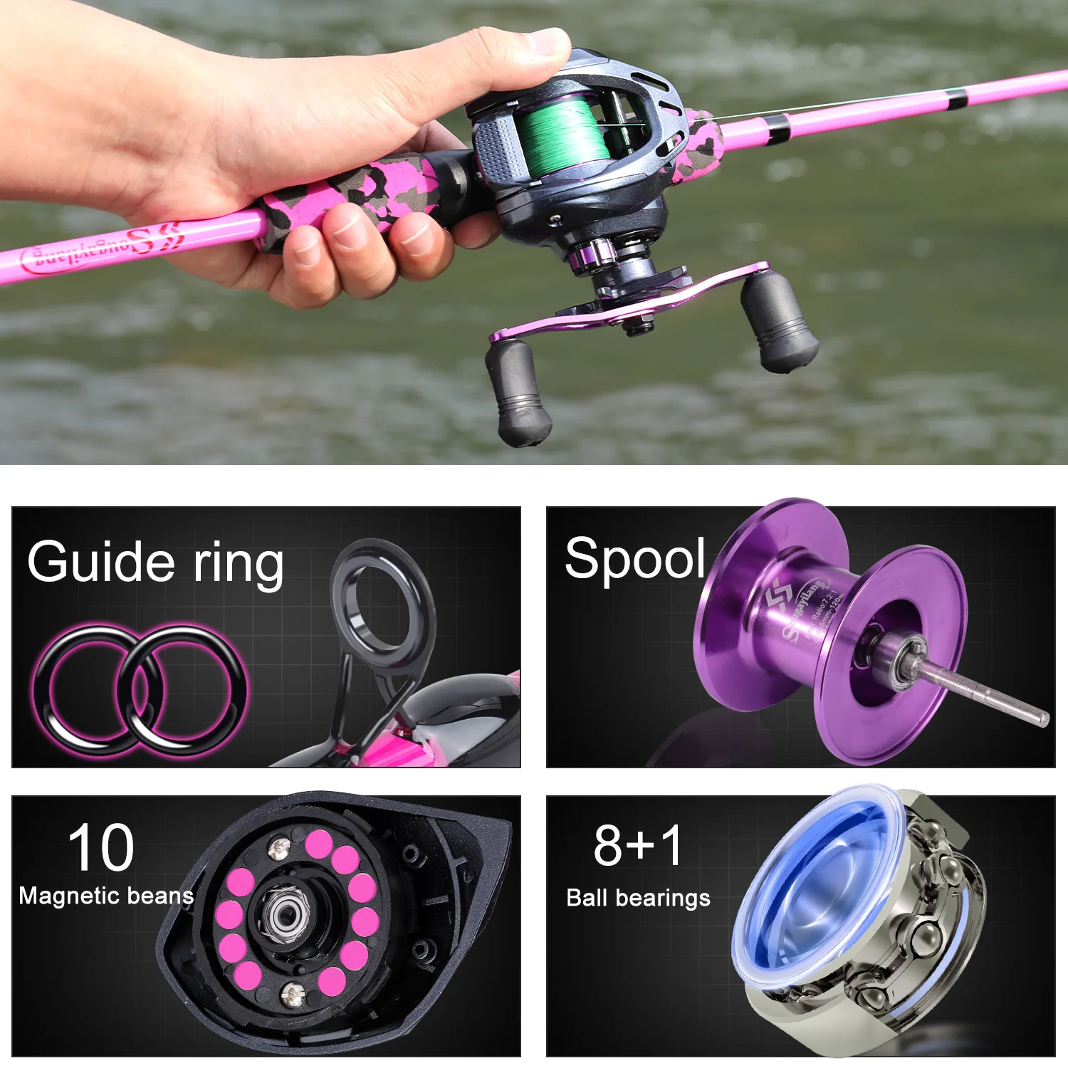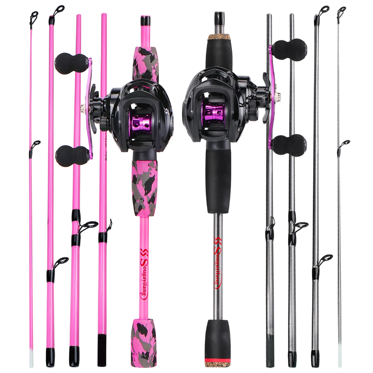 Sougayilang, combo de pesca con señuelos, 5 secciones, 170CM, caña de pescar de fibra de carbono y 8 + 1BB, carrete de Baitcasting, juego de pesca de viaje, Pesca