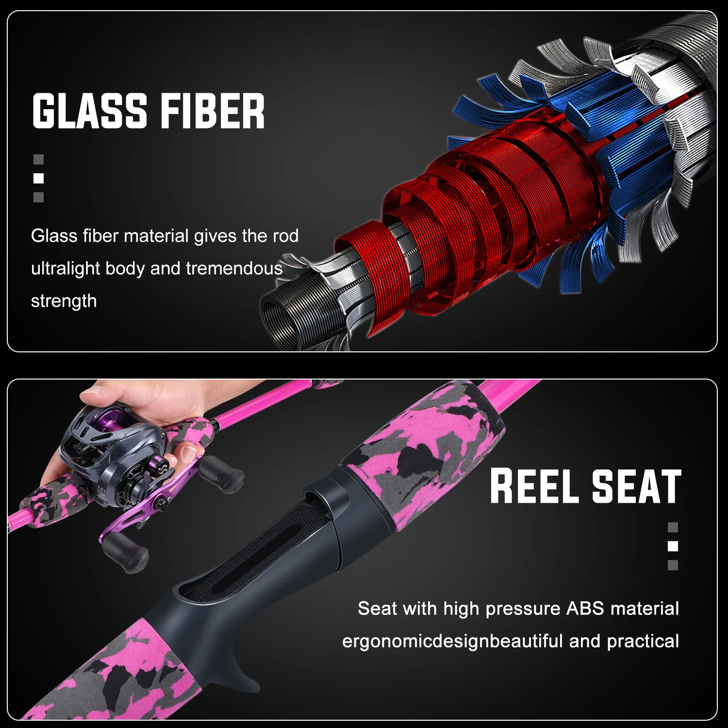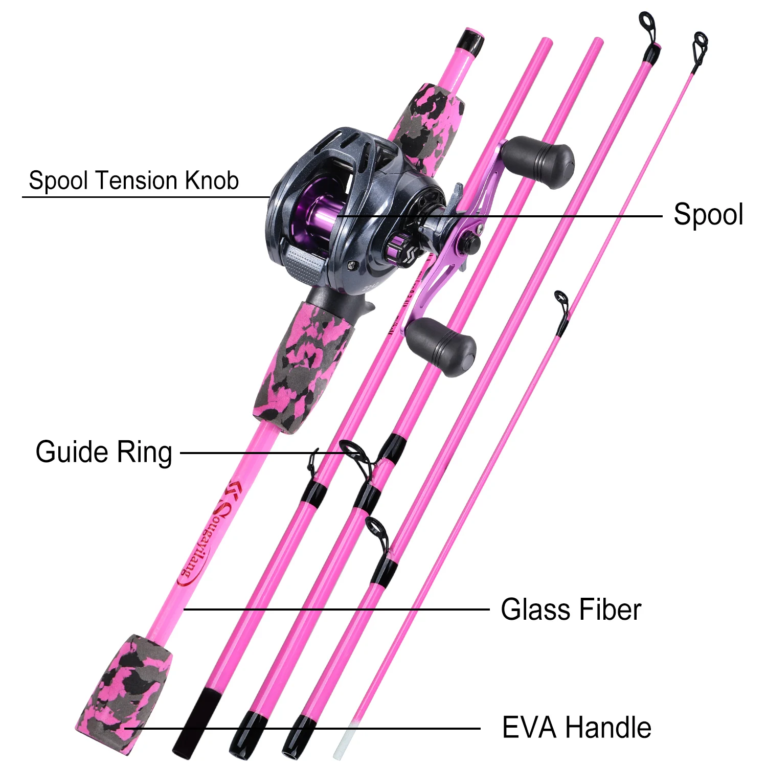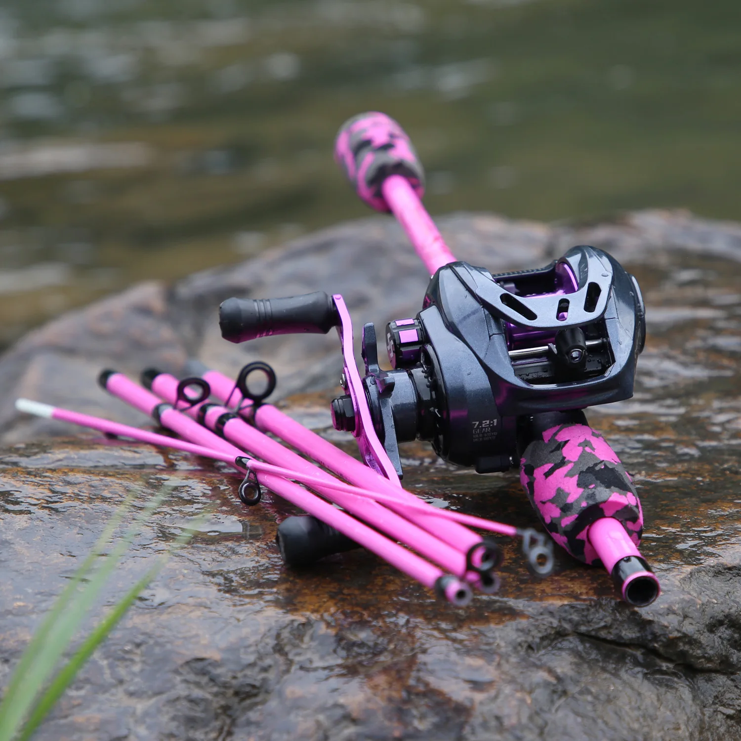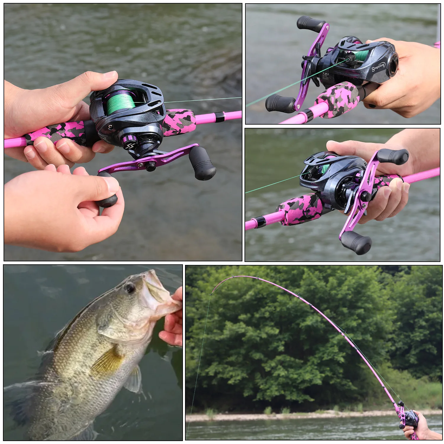 Sougayilang, combo de pesca con señuelos, 5 secciones, 170CM, caña de pescar de fibra de carbono y 8 + 1BB, carrete de Baitcasting, juego de pesca de viaje, Pesca