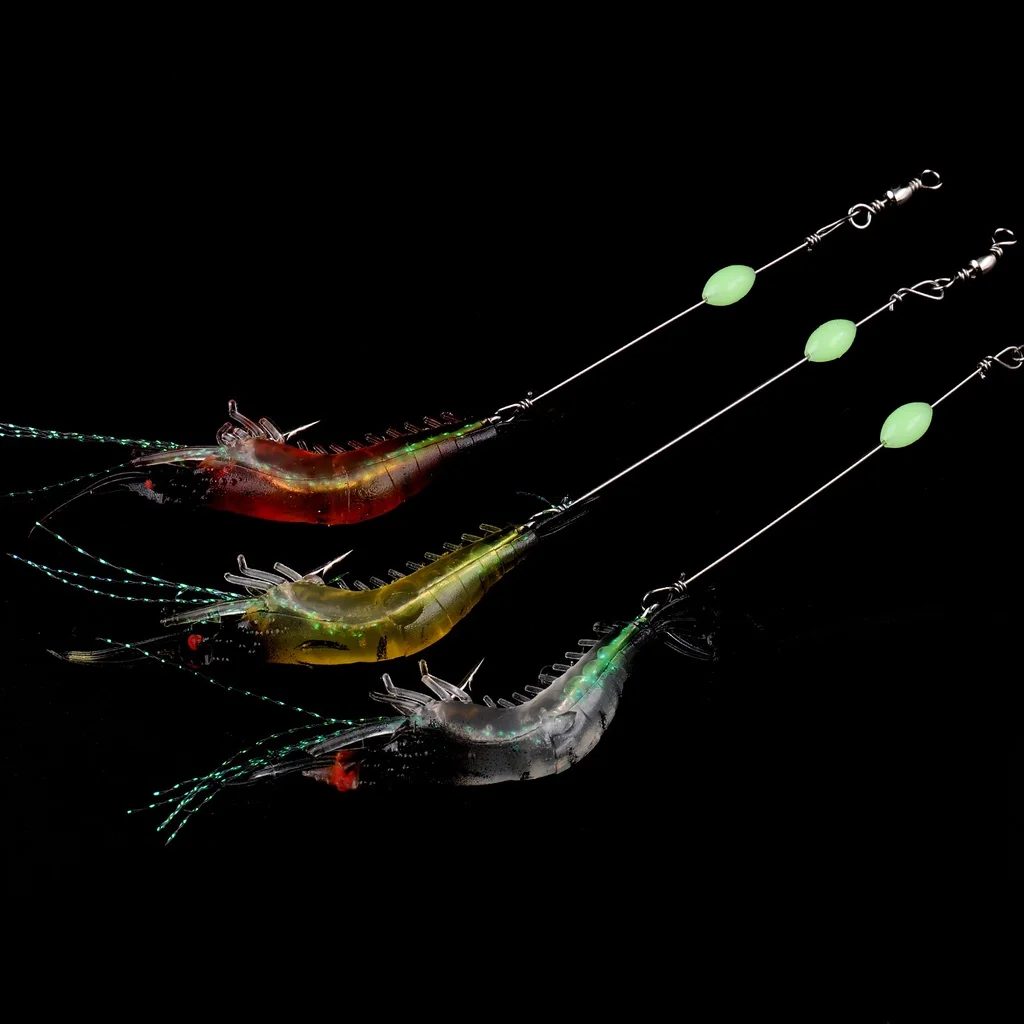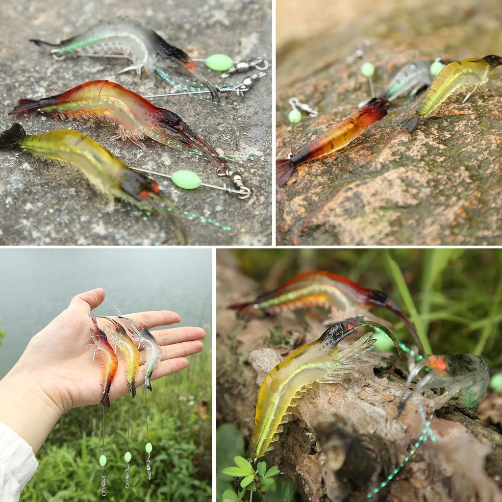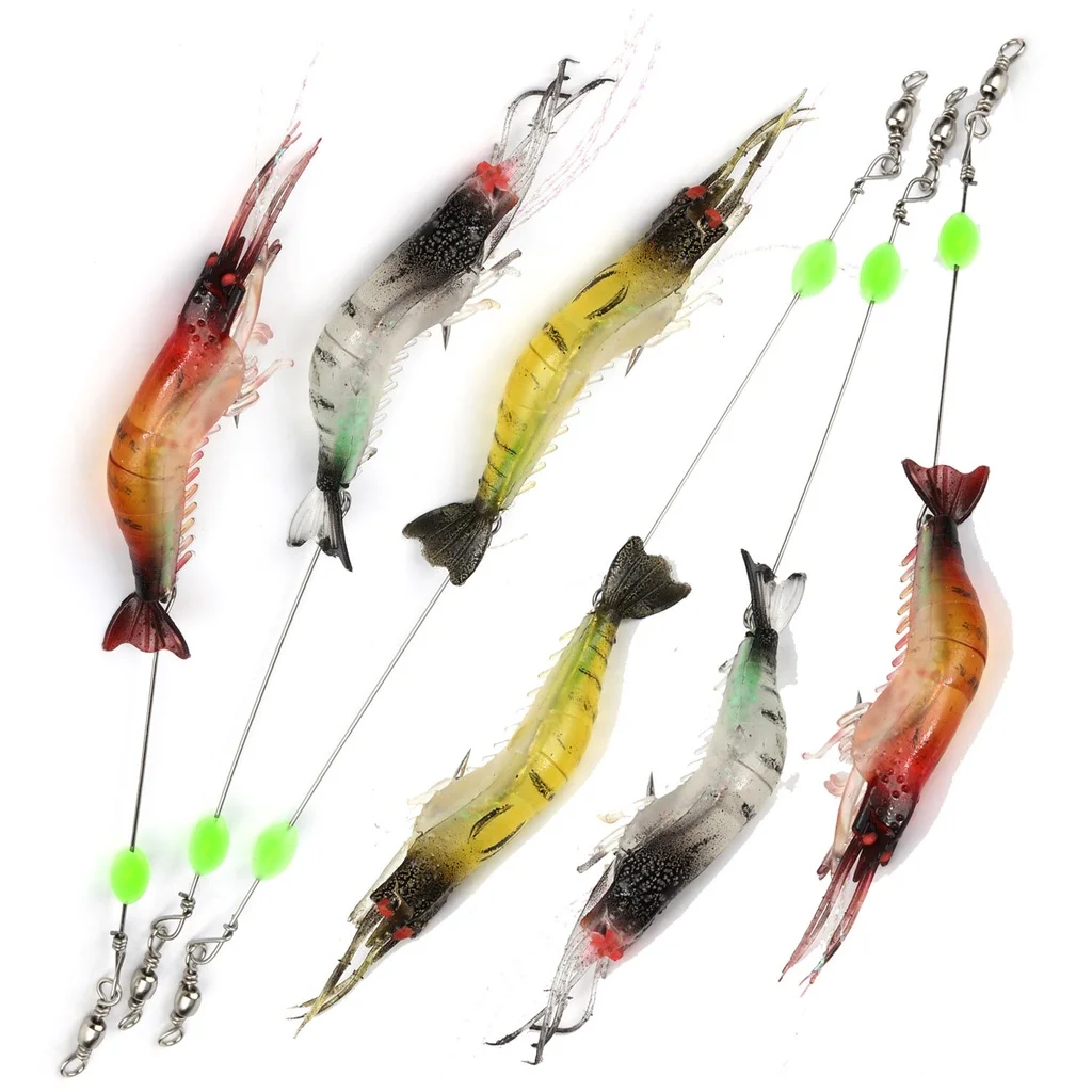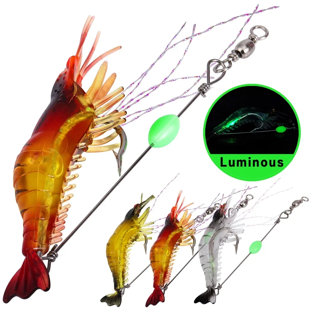 Sougyilang-señuelo de pesca de camarón suave, luminoso, con gancho giratorio, de silicona Artificial, para Lago y mar, 2 piezas, 9cm, 6g