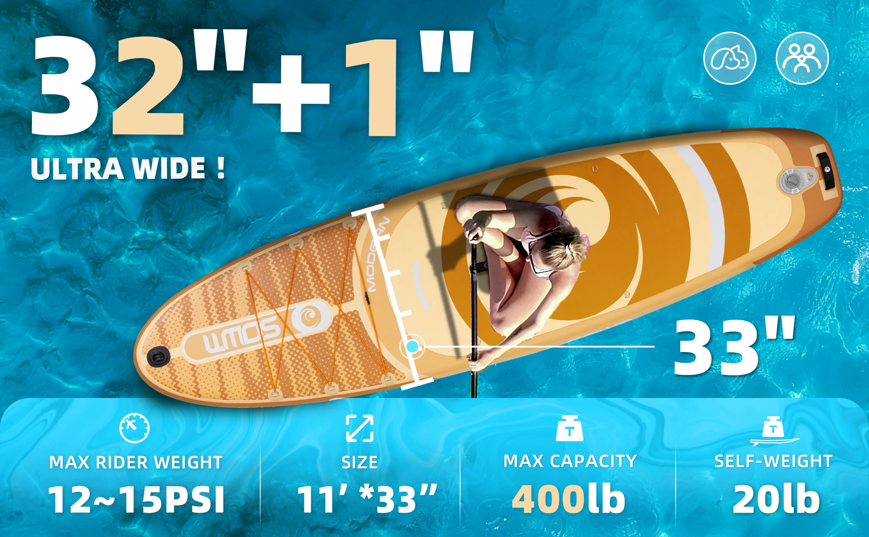 SOWM 11 '* 33 ''* 6 ''subtabla impermeable inflable Paddle Sup Board adulto estilo de pie pesca acuática con accesorios