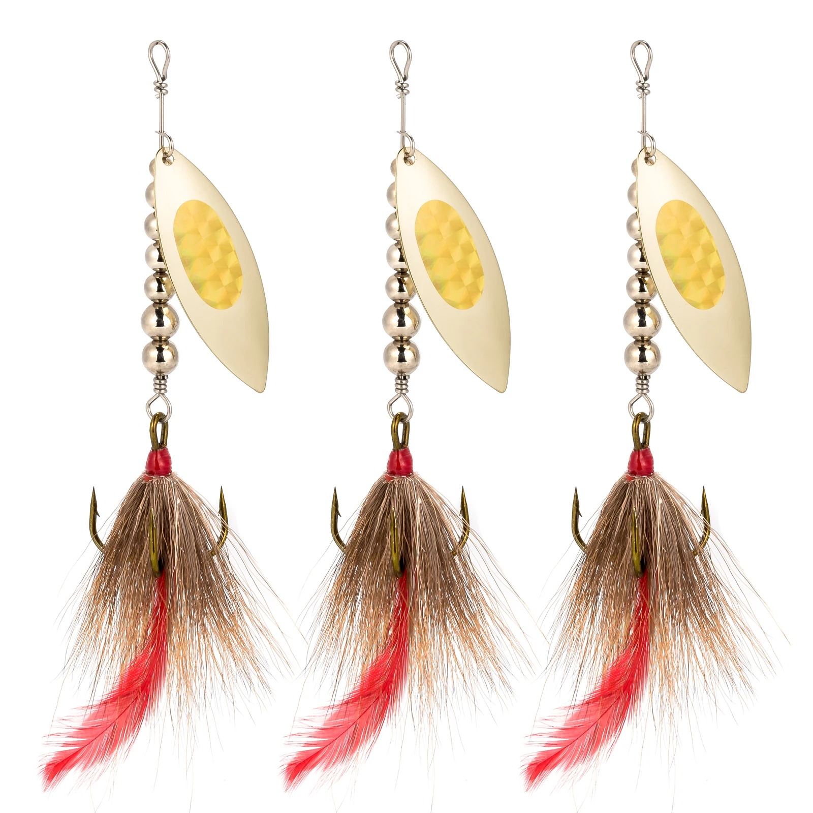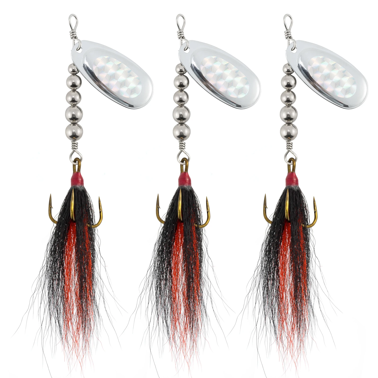 Ganchos triples vestidos con coloridos bucktails de calidad para agregar una acción fluida bajo el agua, maximizando su atractivo.