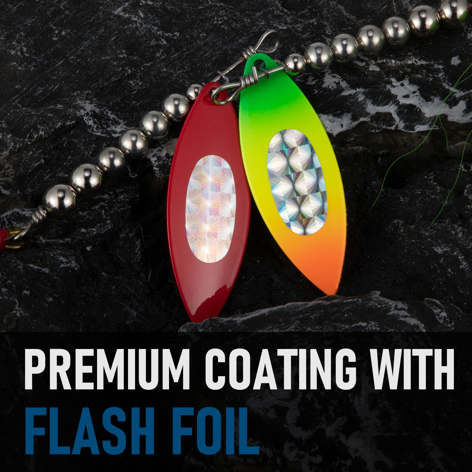 La hoja de metal France con recubrimiento de zinc y lámina flash crea una vibración continua y un flash constante una vez que entra en el agua.