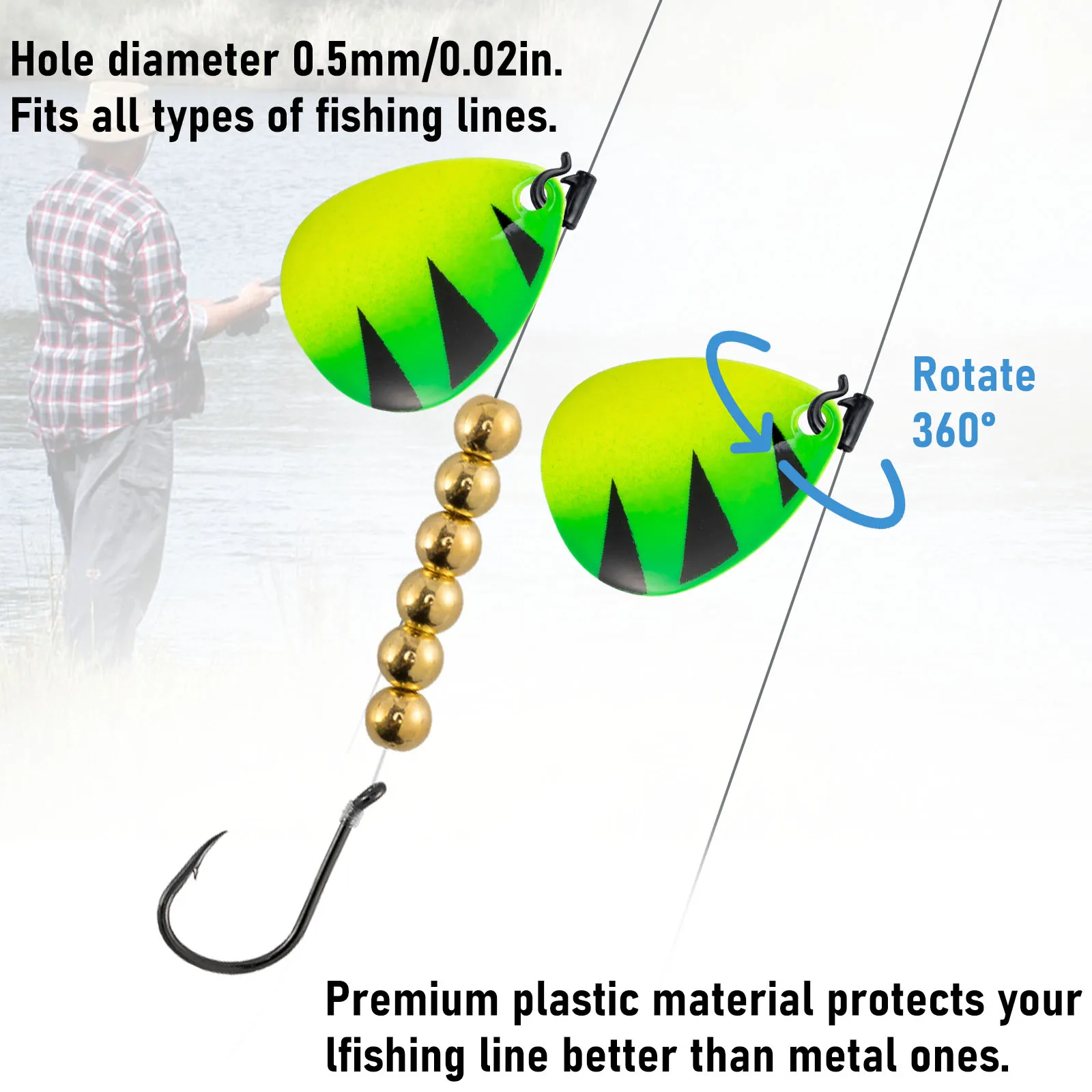 Diámetro del agujero 0.039 "/1mm.Se adapta a todo tipo de sedales. El material plástico de primera calidad protege su pesca mejor que los metálicos.