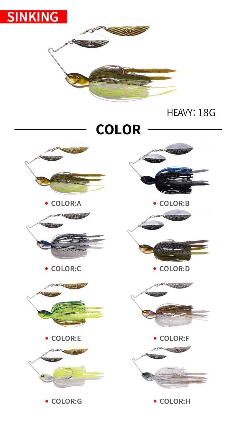 Spinnerbait-Cabeza de plantilla de Metal de goma con falda de silicona, cuchillas giratorias, señuelo japonés de agua salada, Pesca de carpa, 1 piezas, 9020