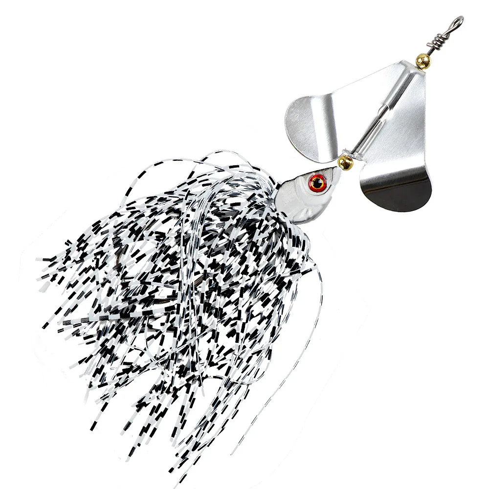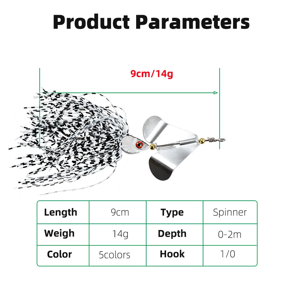 🐟DISEÑO ÚNICO: el cebo Buzz está compuesto de alambre de acero, cuchilla triangular giratoria, plantillas de cabeza de pez realistas y faldas de plástico. Buzzbait es una gran herramienta para localizar lubinas en las aguas poco profundas, también es importante para encontrar peces.