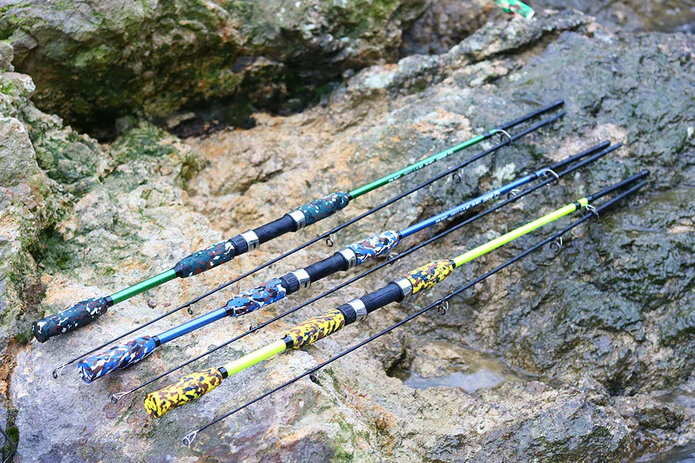 Caña de pescar con señuelo de mano de lanzamiento giratorioCamuflaje Pesca carbono Pole Canne carpa Fly engranaje carrete asiento alimentador ultraligero Mini viaje Surf