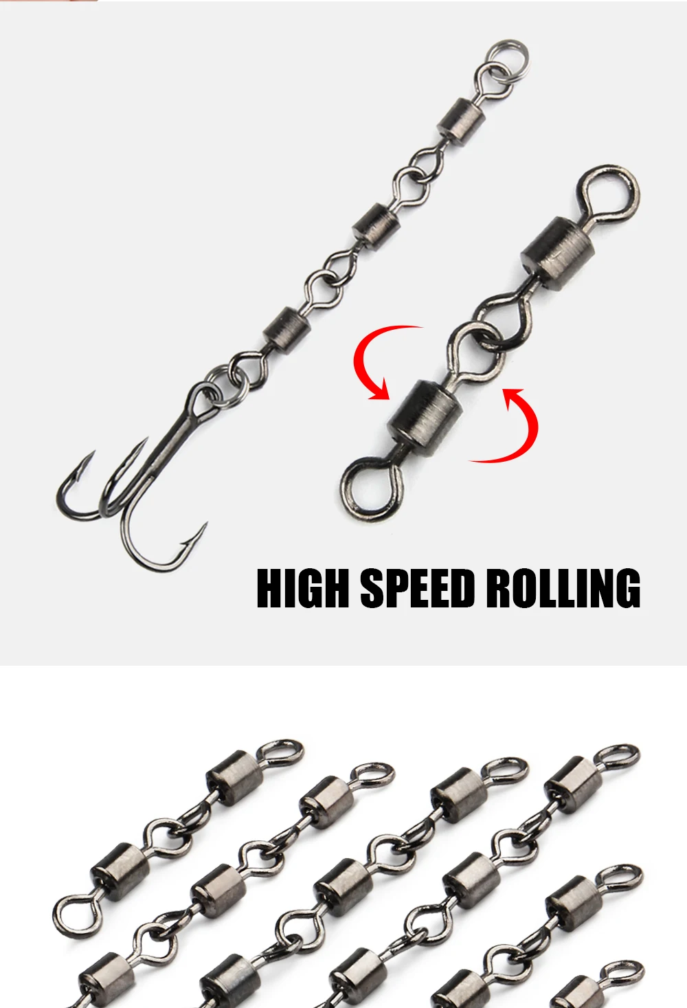 Los giratorios con rodamiento de bolas con cerradura están hechos de cuerpo de cobre con anillo de soldadura de acero inoxidable, fuerte fuerza de tracción.Los conectores giratorios de pesca son buenos para diversos aparejos y traces de líderes.Alto rendimiento en pesca de lubina, agua dulce y salada en general, pesca en alta mar.