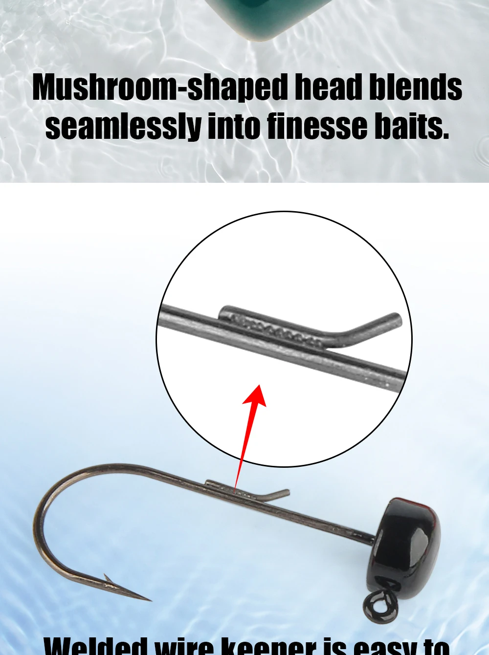 - La cabeza en forma de hongo se integra perfectamente con los finos cebos.