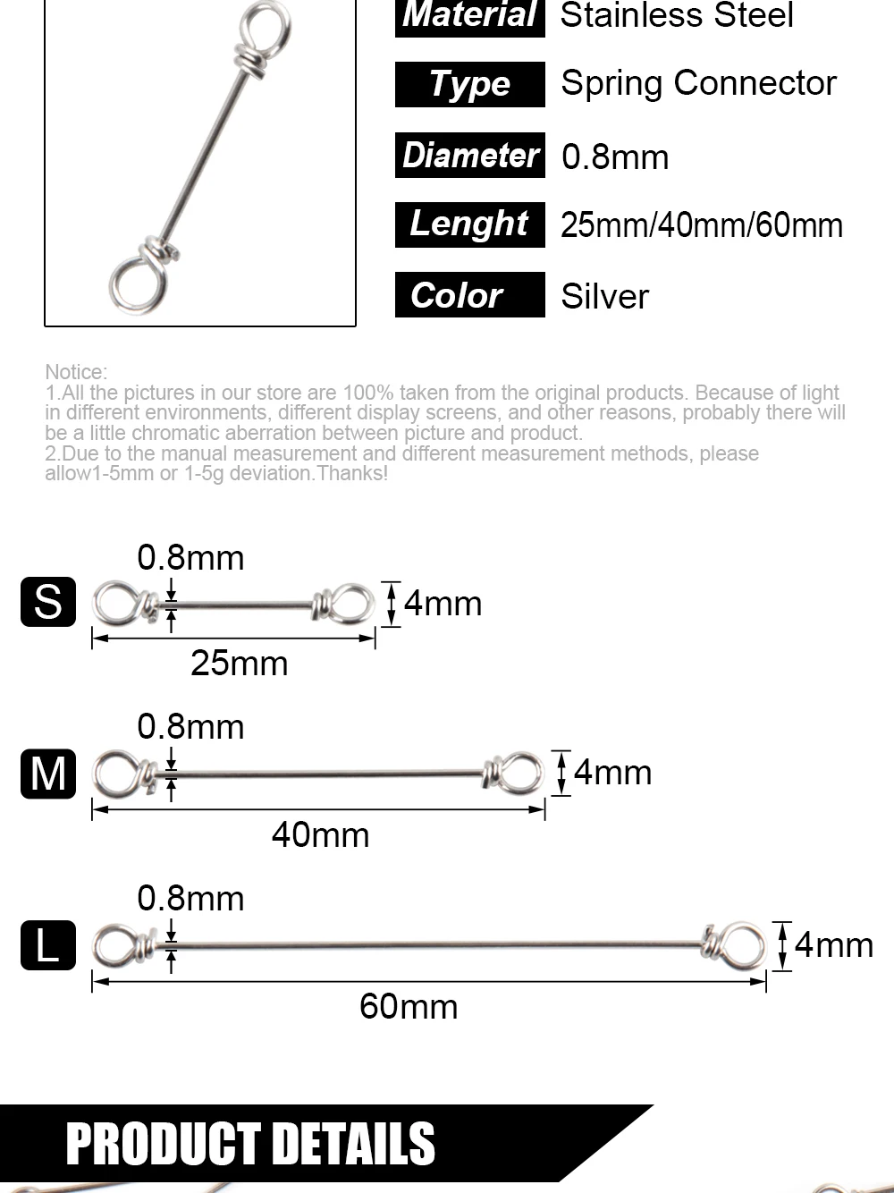 Conector de clips de resorte multifunción, se puede utilizar como conector de señuelos/ganchos de pesca.