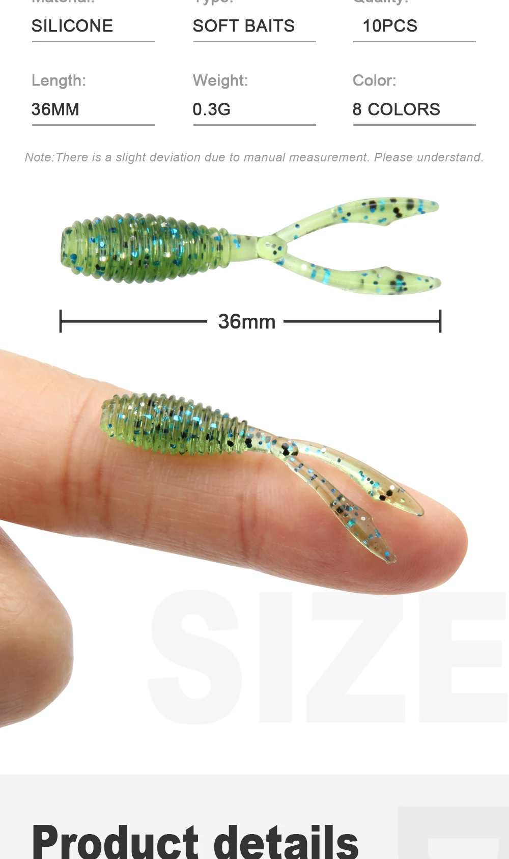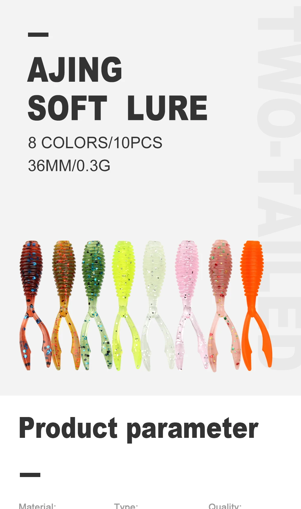 Spinpoler pesca señuelos blandos AJING Rockfish 10 unids/lote 0,3g 36mm doble cola Artificial Wobbler océano roca silicona Shad gusano cebo