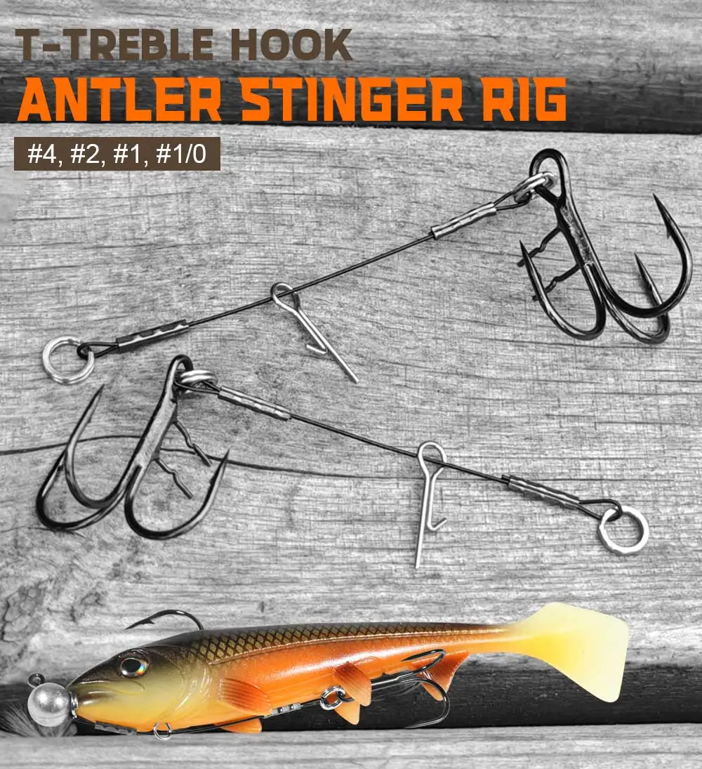El Antler Stinger Rig es un excelente picante para montar en la parte superior del señuelo o en el vientre del señuelo para usar con varios aparejos.