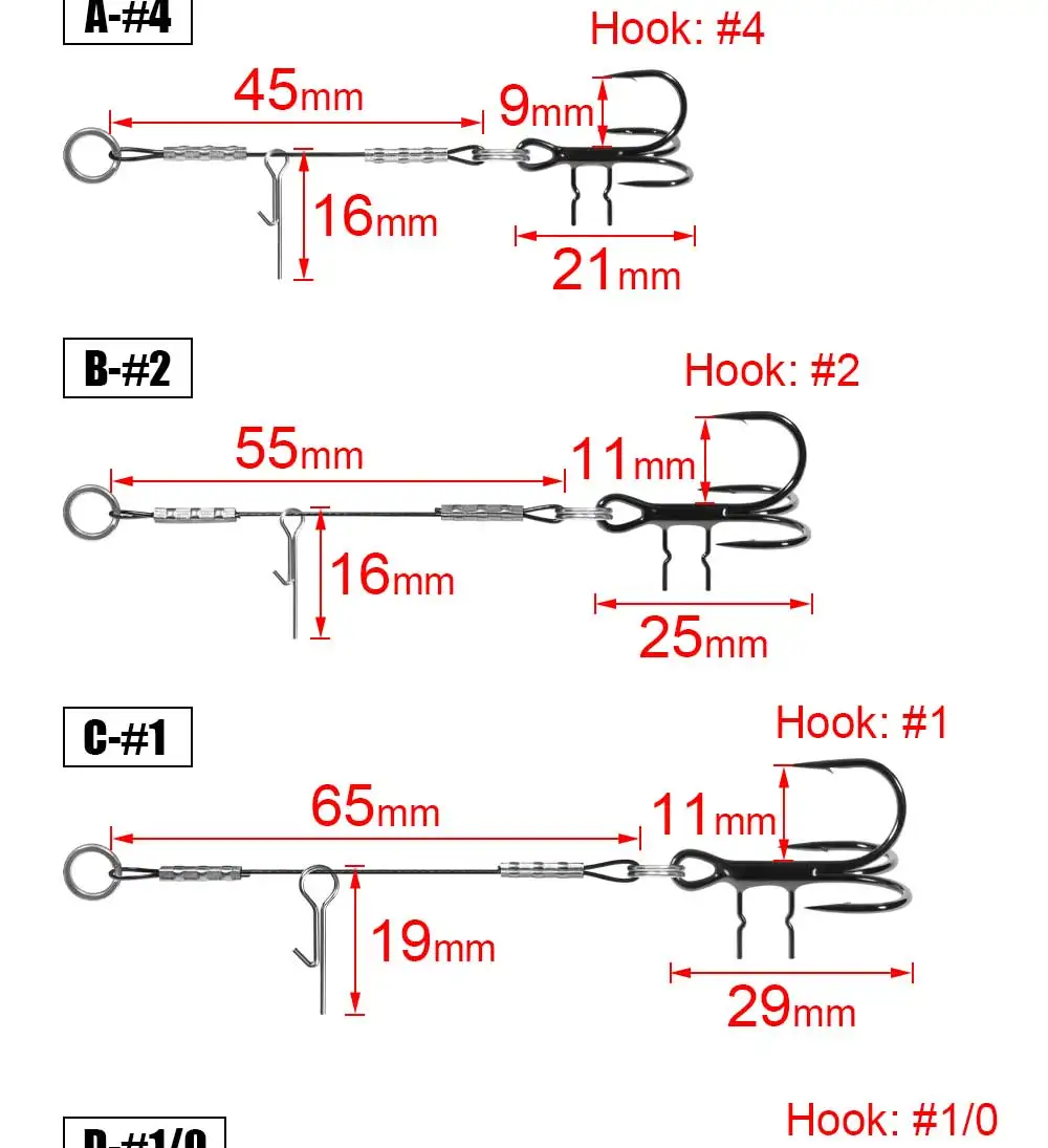 Antler Stinger Rig está diseñado para ayudar a aumentar los enganches durante la pesca con jig y shad.Disponible en varios tamaños de longitudes y fabricado con alambre recubierto de alta calidad.Combínelo con 2X fuertes, 4 tamaños de agudos en T anchos, con púas doblemente integradas para mantener el gancho en su lugar dejando los tres puntos expuestos.El pasador deslizante se puede empujar el cebo blando en cualquier posición para sujetarlo de forma segura.Los pasadores deslizantes se pueden empujar en el softbait para sujetar mejor el anzuelo.