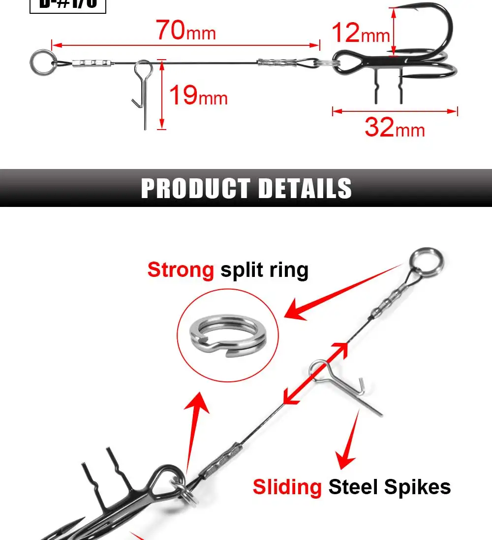 Spinpoler Antler T-Treble Hooks Spike Stinger Rig Lucio Pesca Alambres de alto carbono Leaders Softbait Señuelos de peces de goma Accesorios