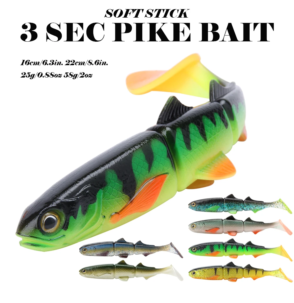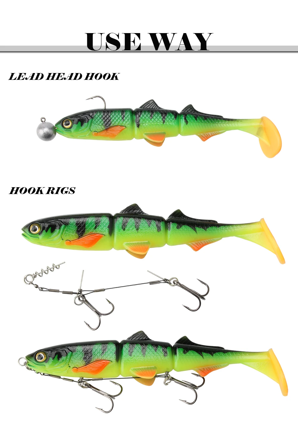 Spinpoler 3-jointed Soft Plastic Bait Swimming Paddle Tail Swimbait 16cm 22cm Pike Bass Muskie Big T Tail Soft Lures 1pcs
