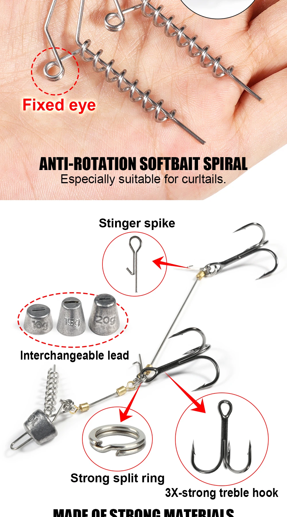 Gancho Stinger: tamaño S/gancho + plomo de 5 g 7 g 10 g, tamaño M/gancho + plomo de 5 g 10 g 15 g