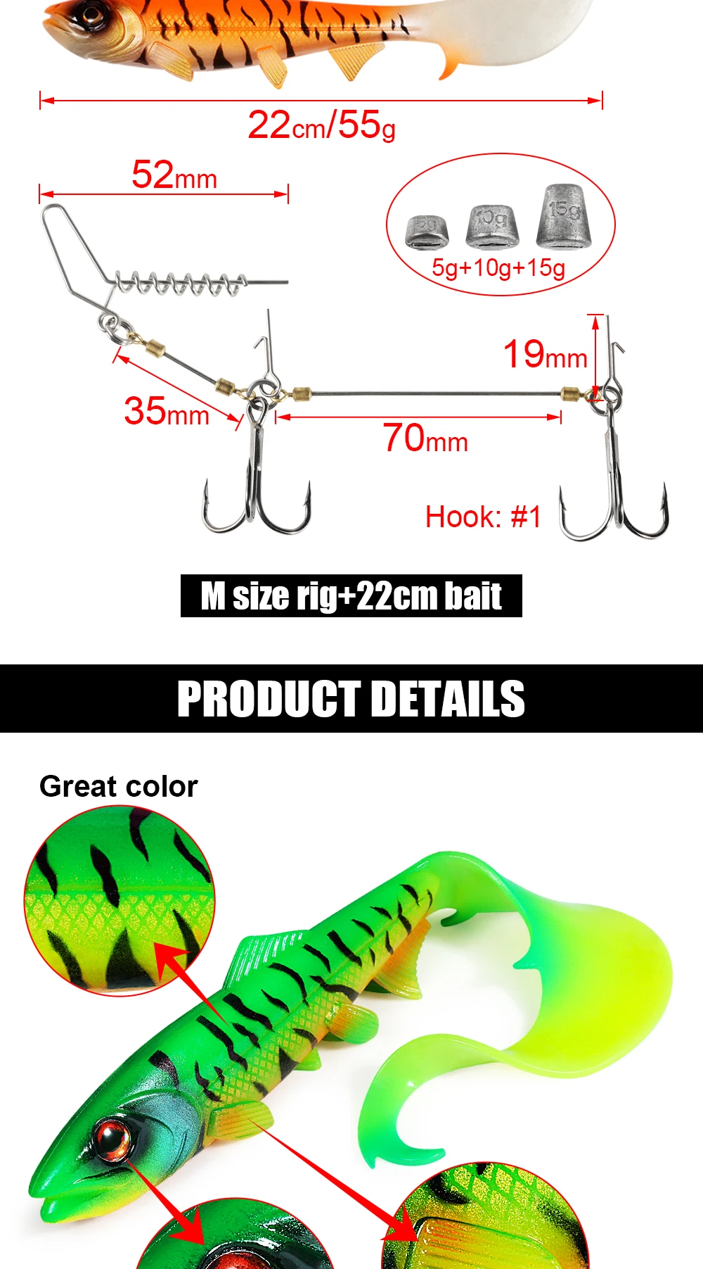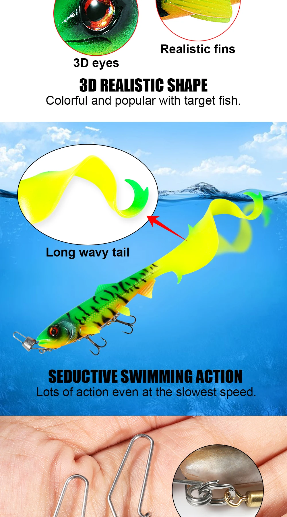 Se ve genial, un swimbait realista con aguijón con anzuelos afilados, ¡espero atrapar al monstruo del río que destruyó 2 cañas y varios swimbait con un solo anzuelo, twisters y más! Envía pica tan pronto como la recibí, estoy seguro de que es ella.