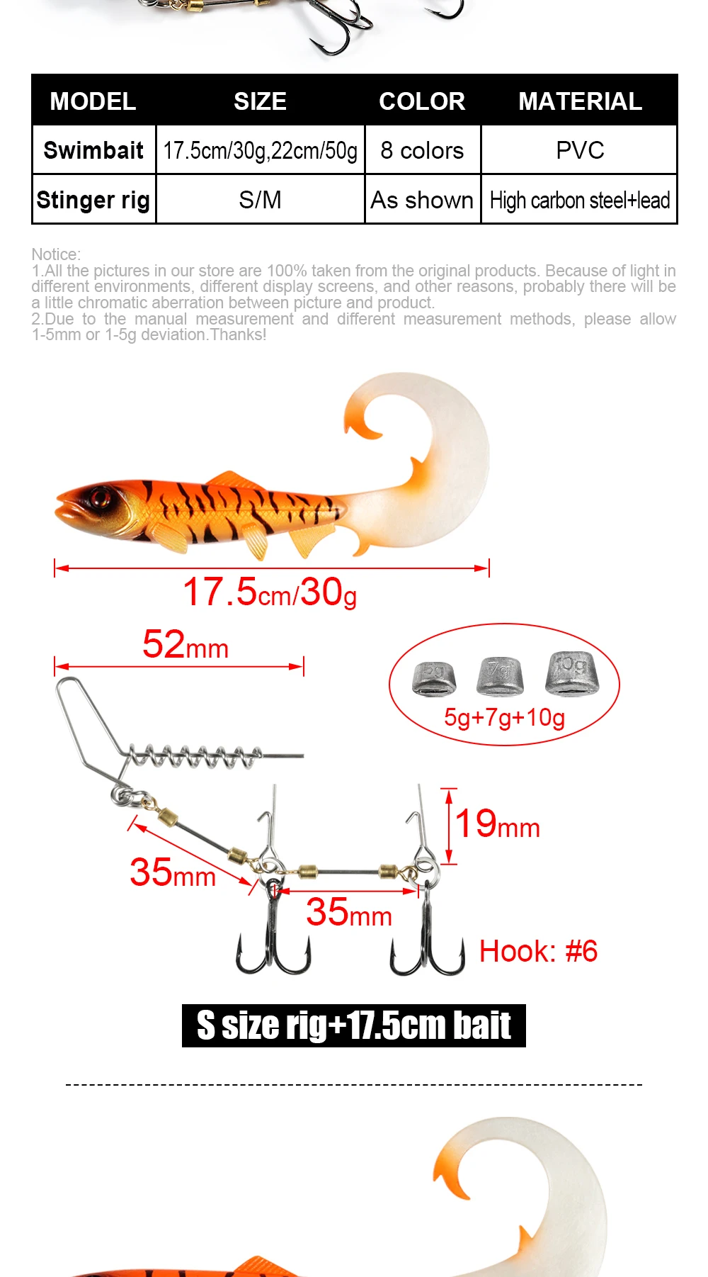 Spinpoler bomba de fuego Swimbait con Stinger Rig Hook Kit de pesca Grub de cola larga señuelo suave peso de plomo para Lucio Big Game bomba de fuego falsa con el kit de aparejo de sistema de Lucio