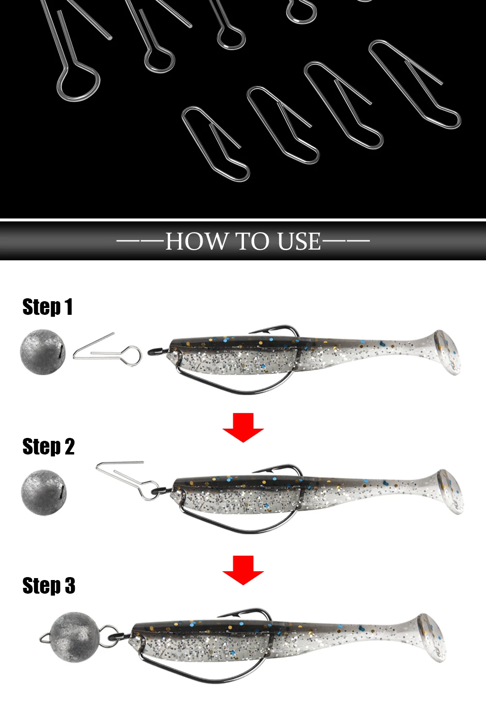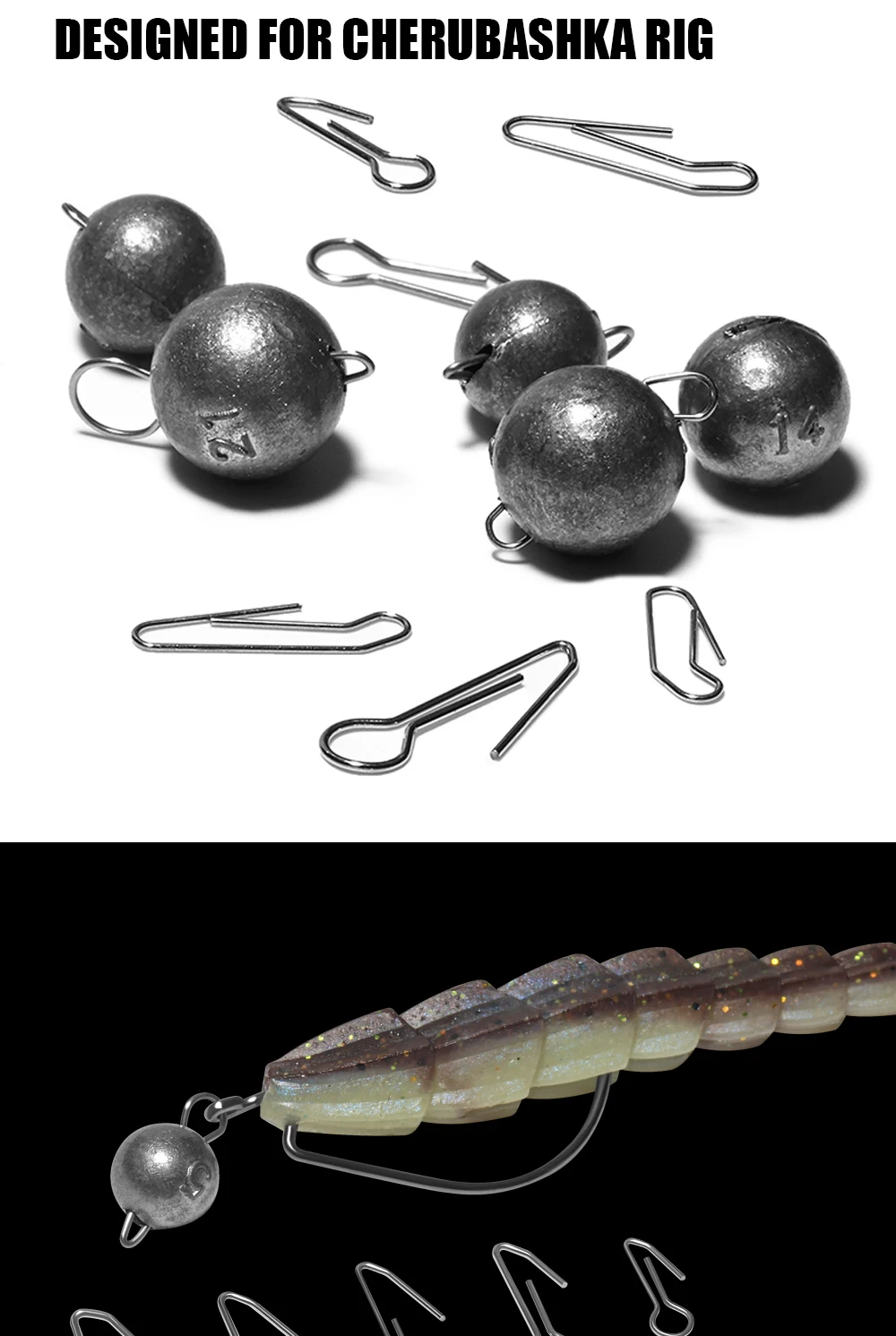 El clip está hecho de alambre de acero inoxidable y sujeta la cabeza jig con el gancho, lo que hace que la funcionalidad de Cheburashka Jig sea diferente a eso, de los clásicos cabezales jig. Está fabricado con alambre extrafino de 0,6-0,8 mm, de excelente calidad y resistencia. Aprovecha la plantilla Cheburashka con ganchos de tamaño pequeño, para conseguir golpes en pequeños señuelos de silicona también.