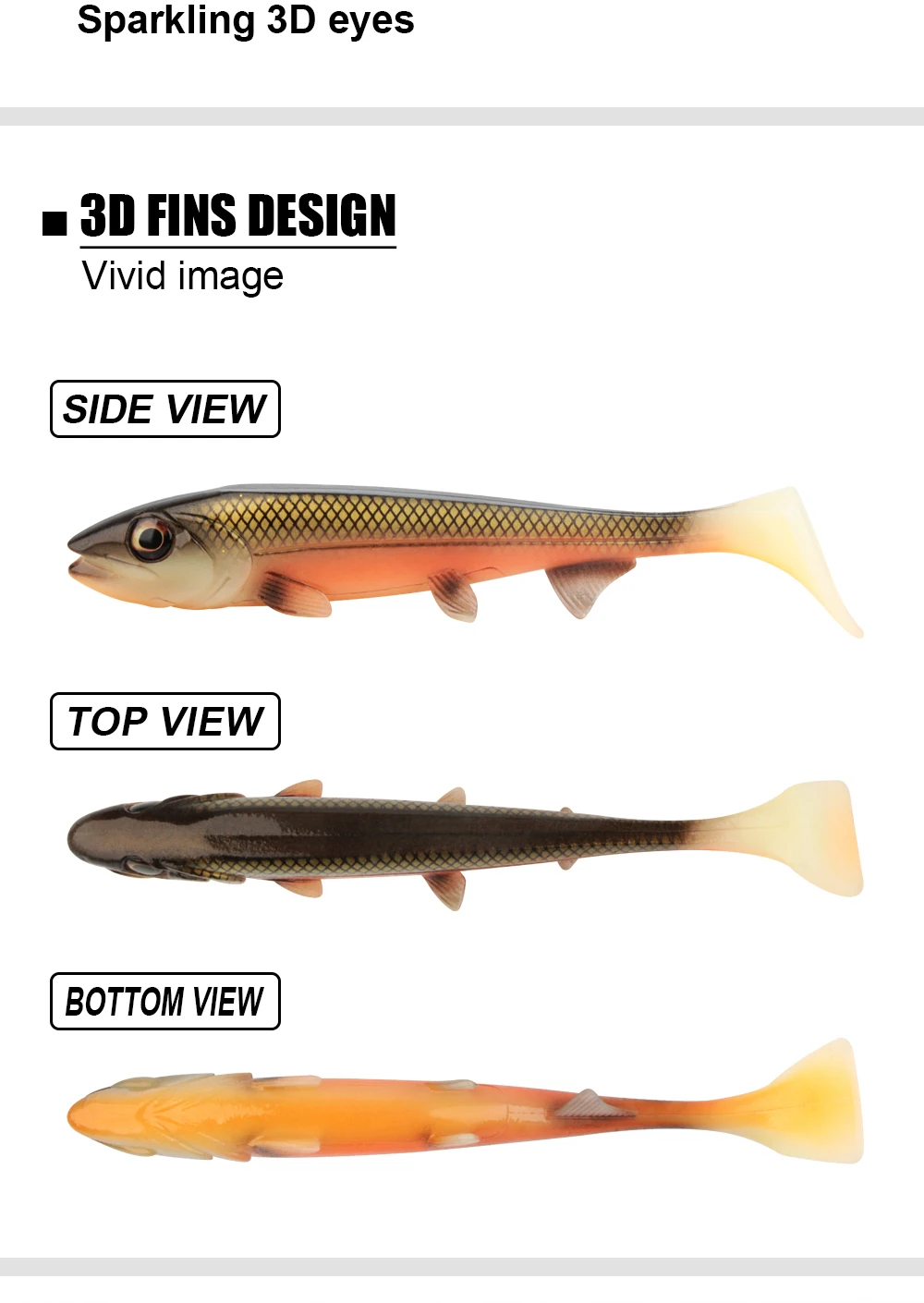 La ancha aleta de cola y los brillantes ojos 3D son realmente bien recibidos por el pez objetivo y garantizan nuevos mejores personales.