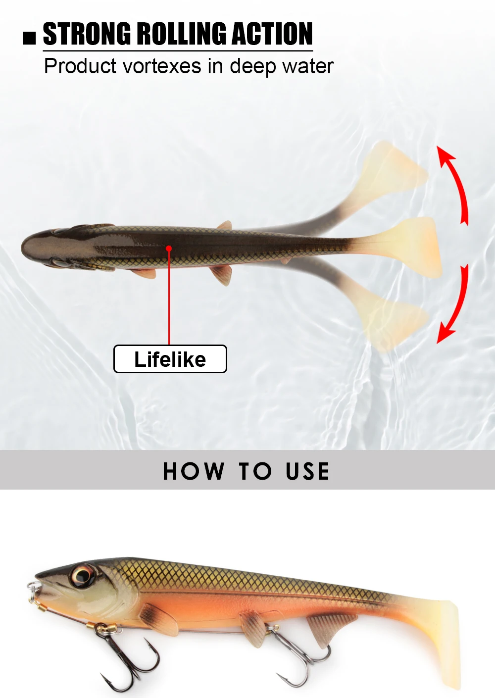 Señuelo de pesca: señuelos de lucio de sombra Swimbait cola cuadrada