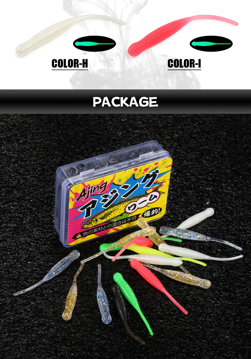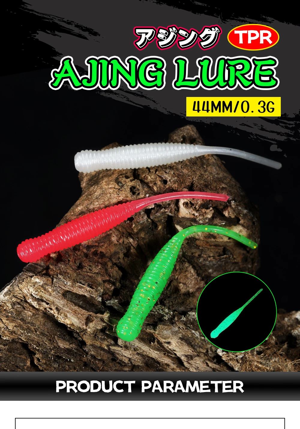 Spinpoler señuelo de pesca de una sola aguja con cola de gusano Micro 44mm Ajing pequeño pez roca silicona Isca cebo Artificial plantilla luminosa 20 piezas