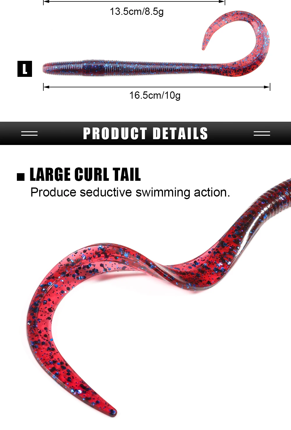 Spinpoler Soft Fishing Lure Worm Long Tail 8" 10" Double Color Earthworm Silicone Artificial Bait For Bass Saltwater Fishing Tackle