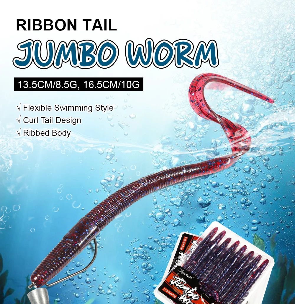 The soft Big Worm delivers on a reliable bass-catching performance! The large tail moves with water currents, so while sitting it will sway back and forth, adding to the realistic look of the bait. While reeling, the tail creates an alluring swimming motion that will have the fish striking time and time again! This bait is versatile and great for year-round use.