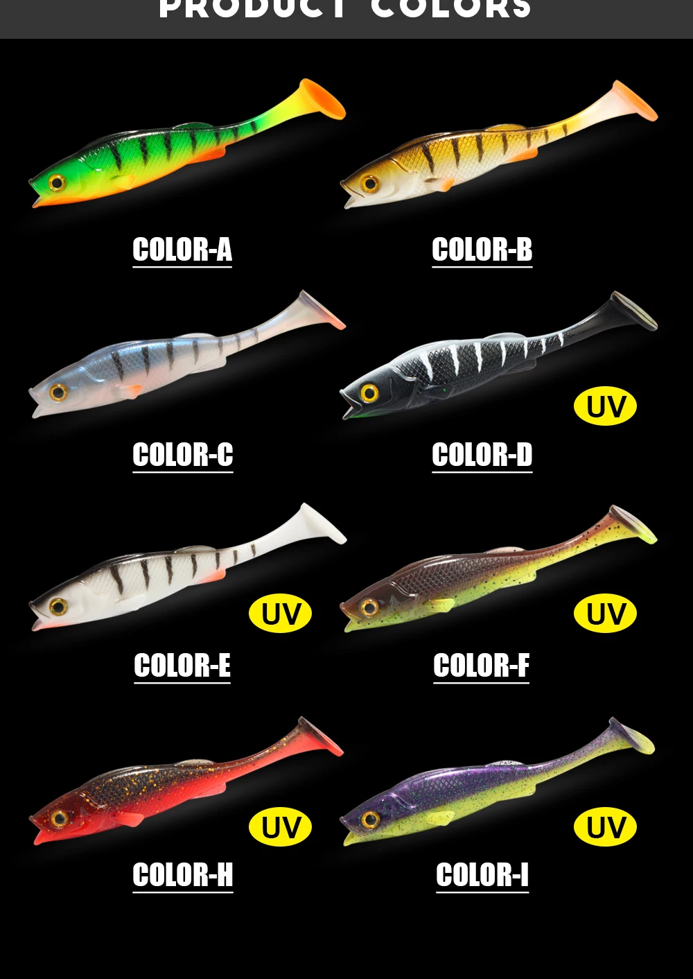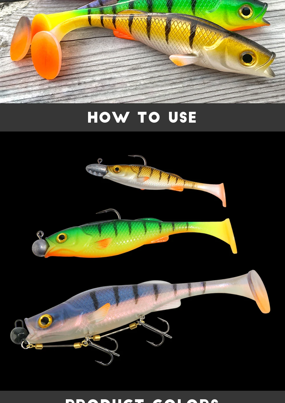 Los cebos Vigor Perch son señuelos de aspecto muy natural con una piel texturizada a escala, aletas realistas y grandes ojos 3D.