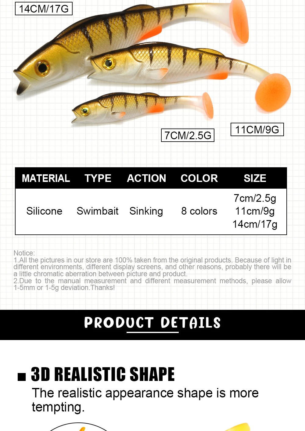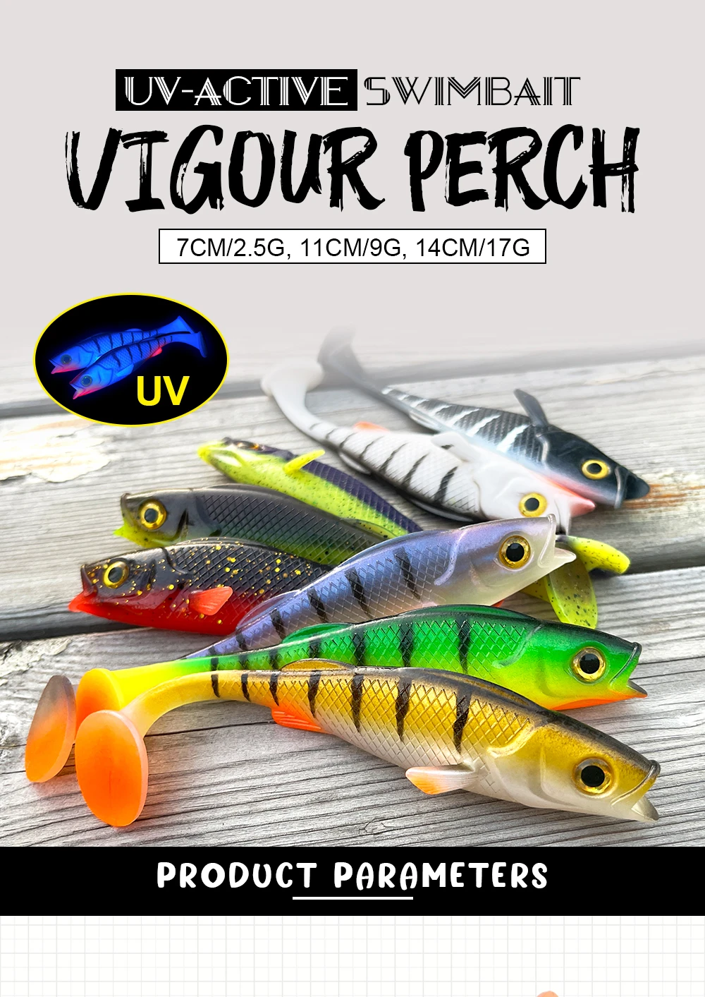 Spinpoler Vigour Perch suave swimbait perca sombra señuelo de pesca 7cm/11cm/14cm para lucio zander bass paddle cola pesca