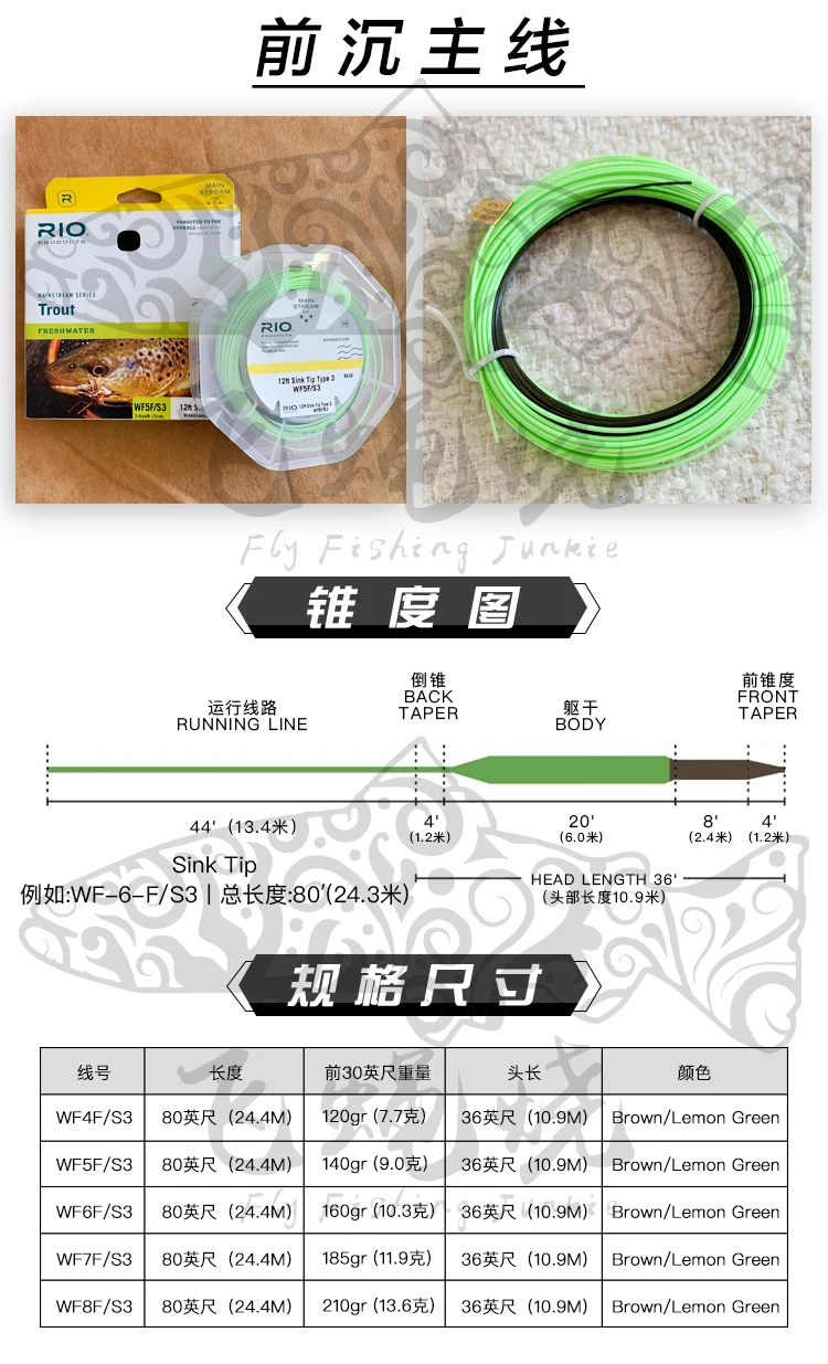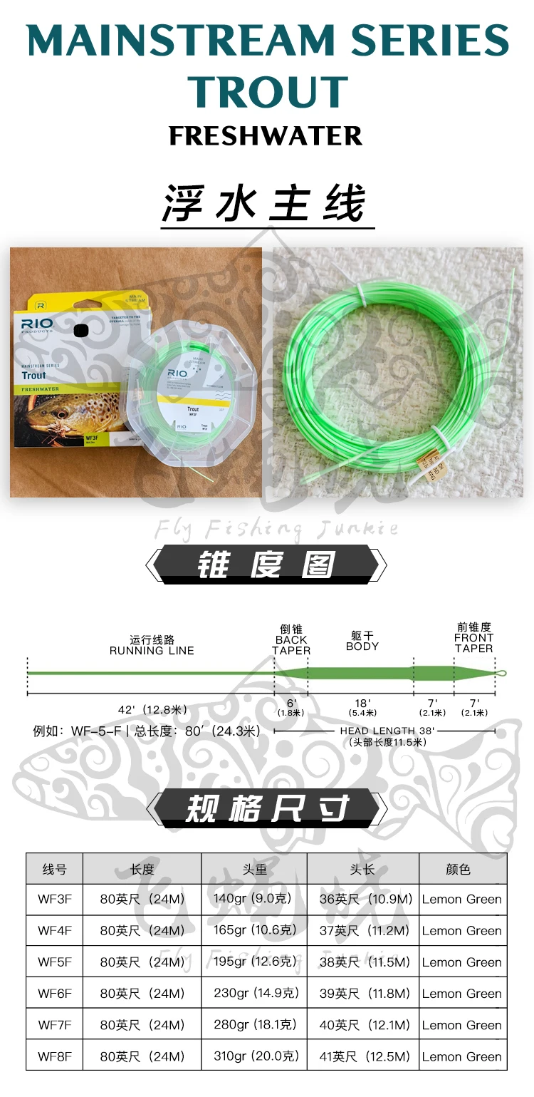 Spot RIO trucha línea principal de agua flotante S6, línea principal sumergida S3, extremo frontal, línea principal sumergida, pesca con mosca, quema de moscas
