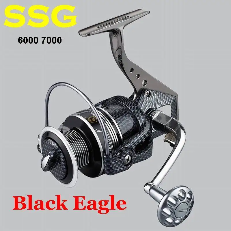 SSG SSG-1 5000 6000 7000 Carrete de pesca de agua de mar Black Eagle Rodamiento de acero al carbono 4,7:1, 405-415 g