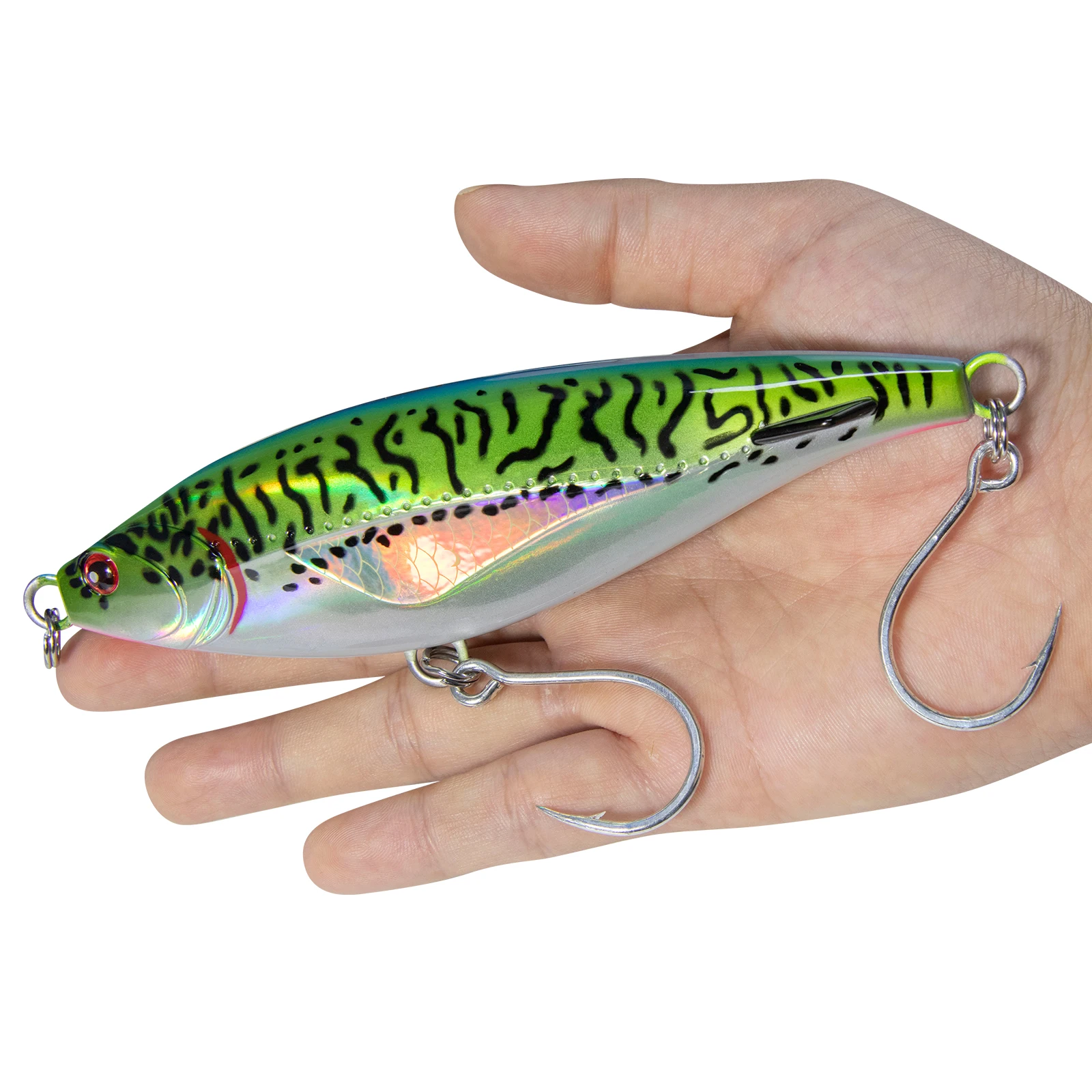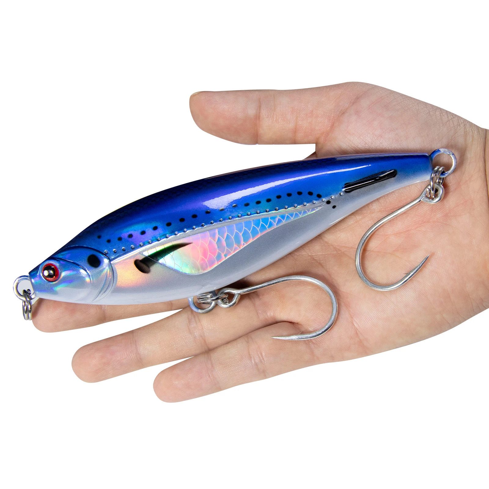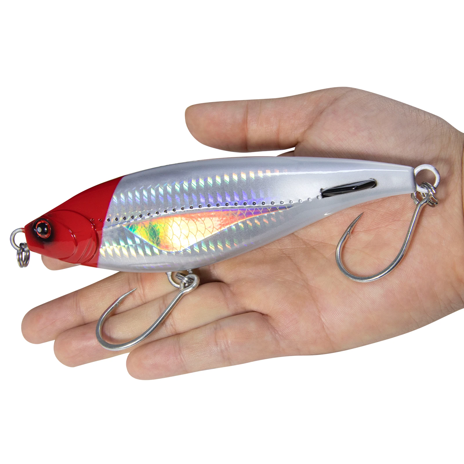 Señuelo de lápiz fundido de gran tamaño: hecho de plástico ABS de primera calidad, resistente, duradero, equipado con un peso de transferencia de centro de gravedad y una aleta de cola voladora para aumentar la distancia de lanzamiento.Señuelos de lápiz de pesca en agua salada ideales.
