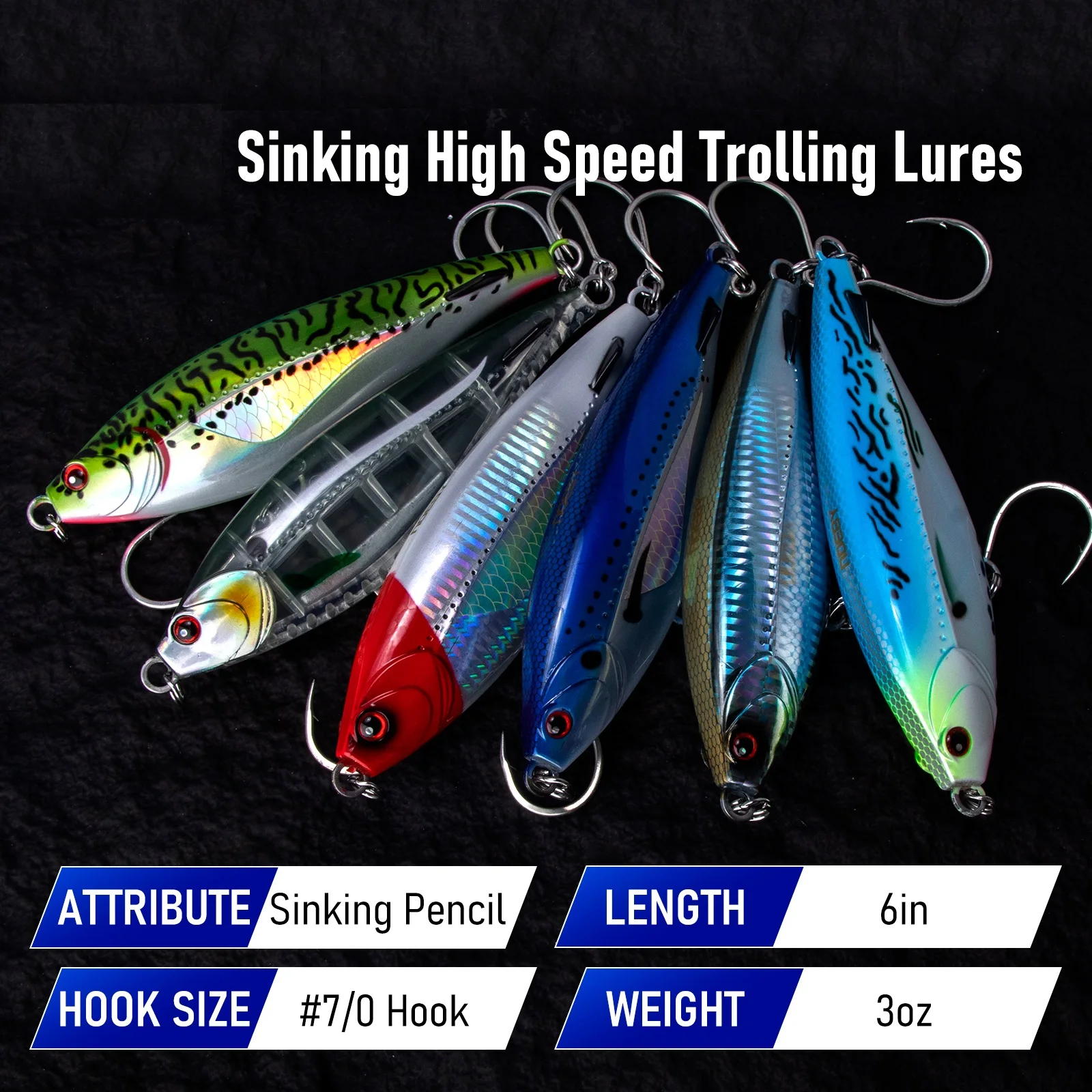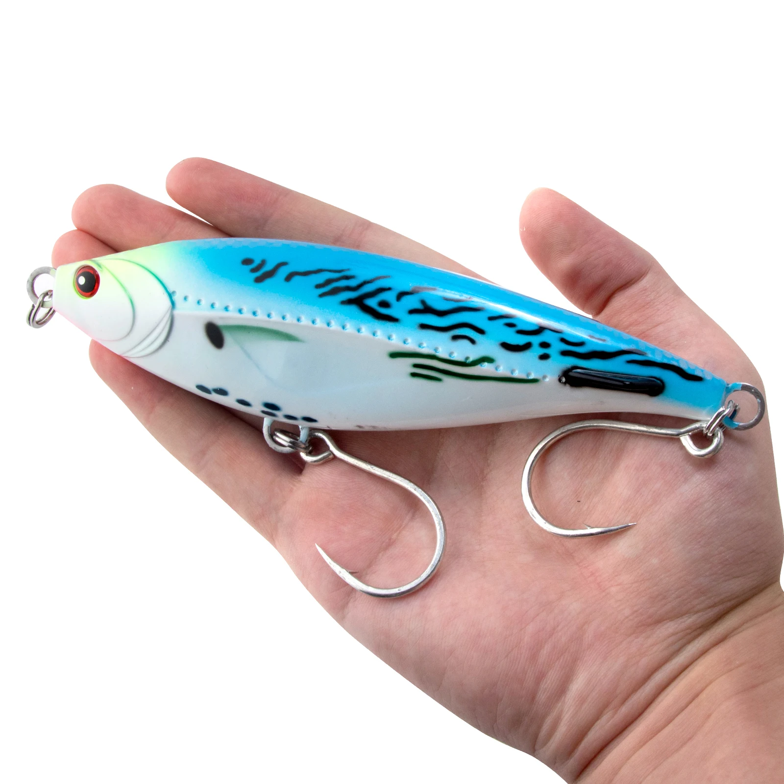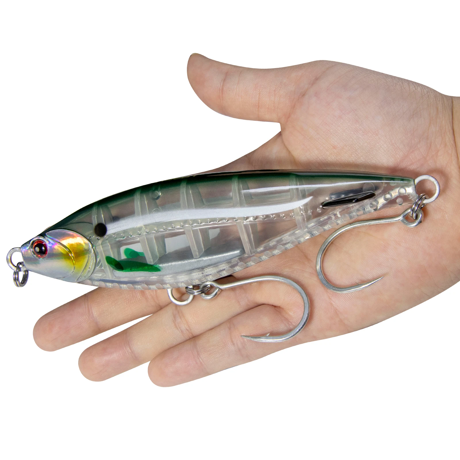 Señuelo de lápiz fundido de gran tamaño: hecho de plástico ABS de primera calidad, resistente, duradero, equipado con un peso de transferencia de centro de gravedad y una aleta de cola voladora para aumentar la distancia de lanzamiento.Señuelos de lápiz de pesca en agua salada ideales.